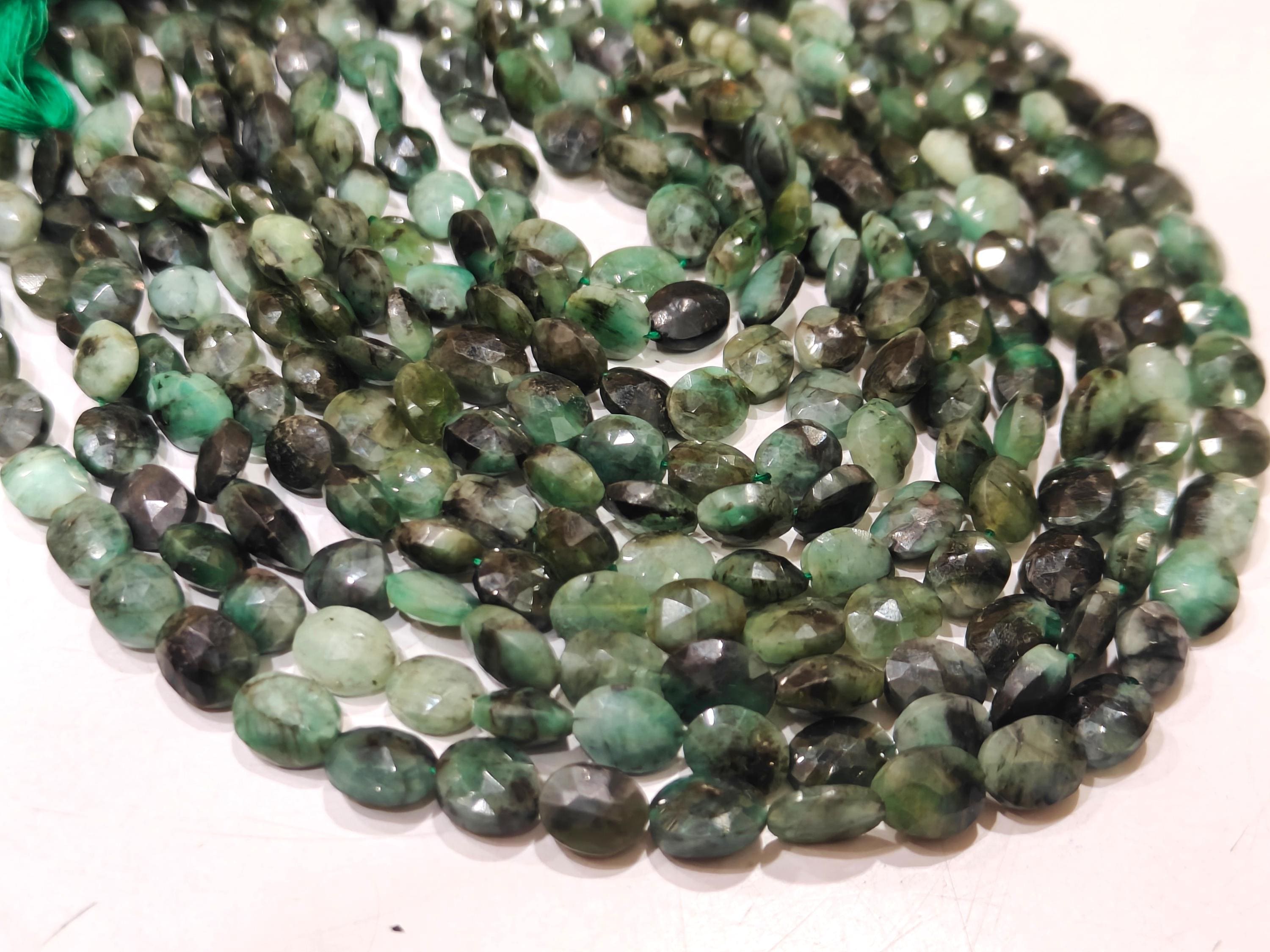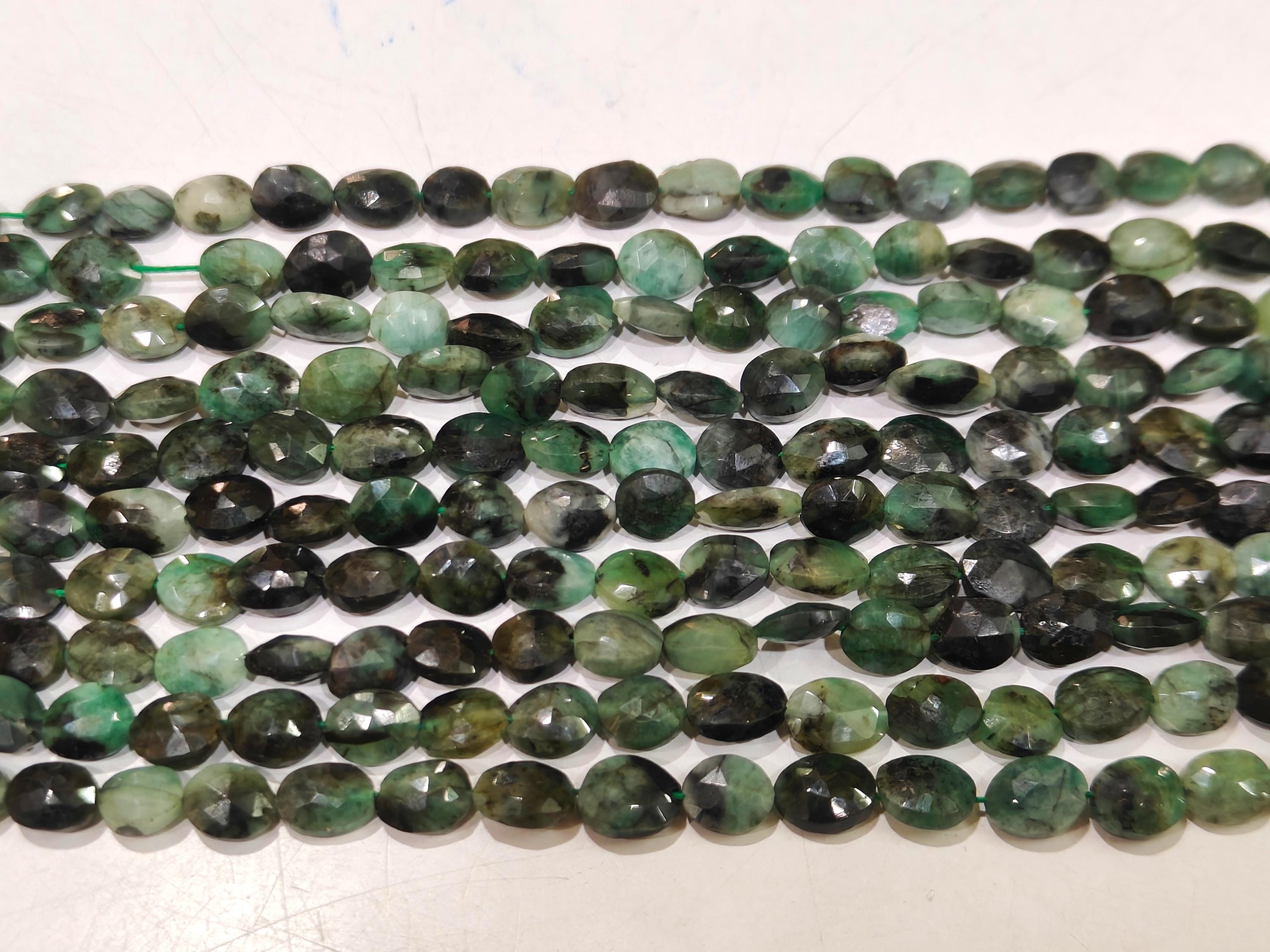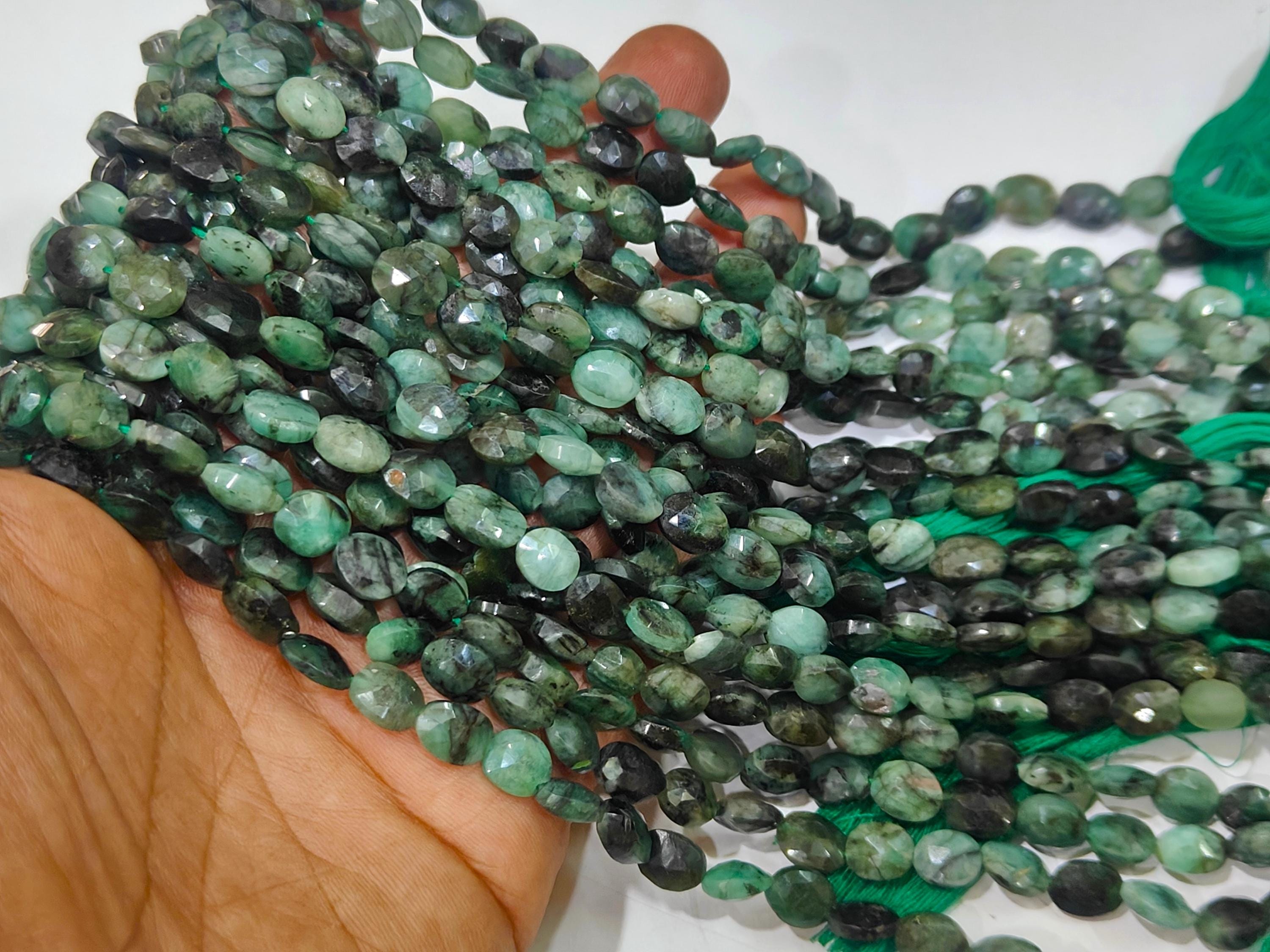Natural Emerald Oval Faceted Briolette 8-9mm Beads Mani Shape Gemstone Beads sold per Strand 12 Inches Long