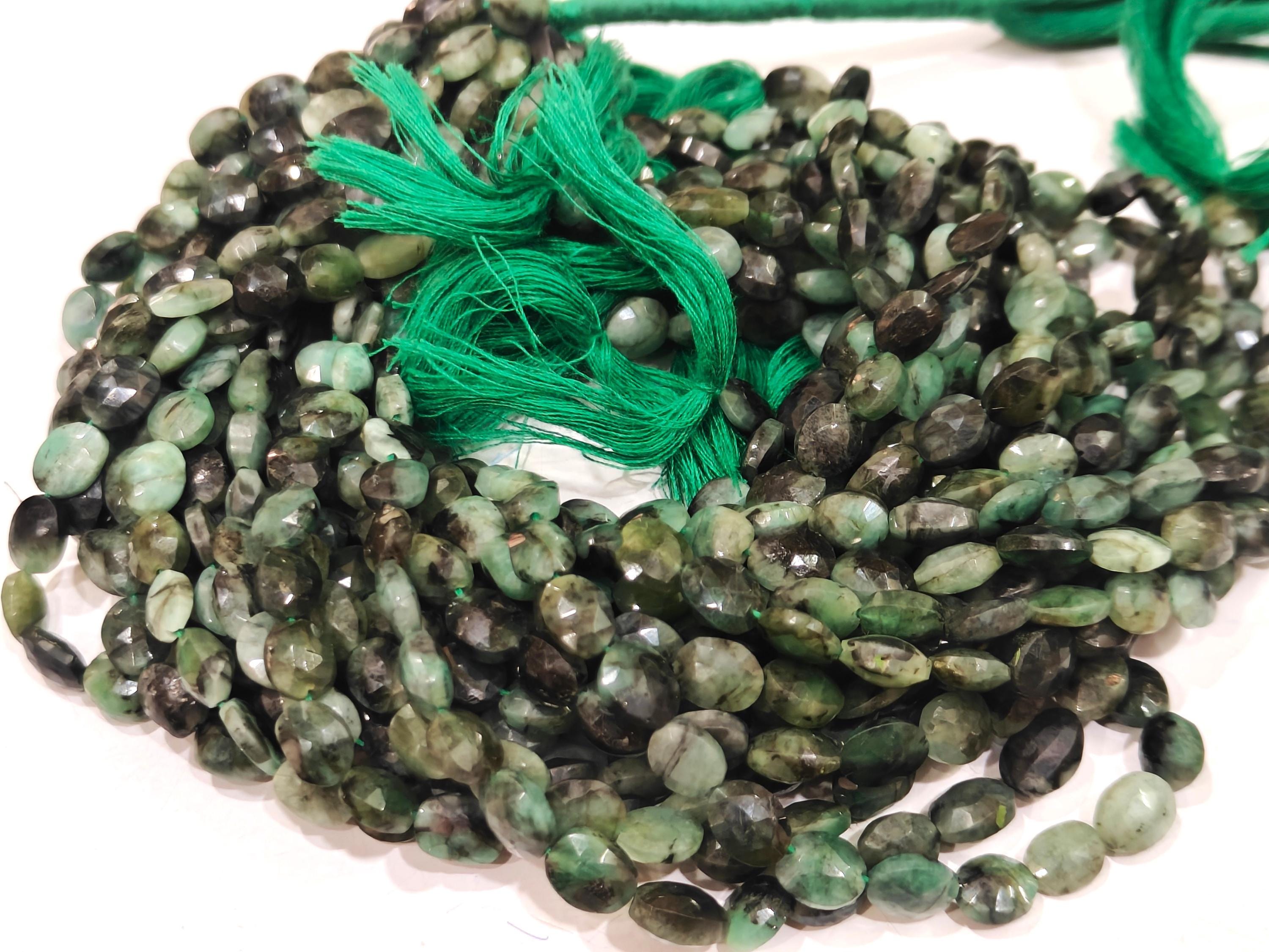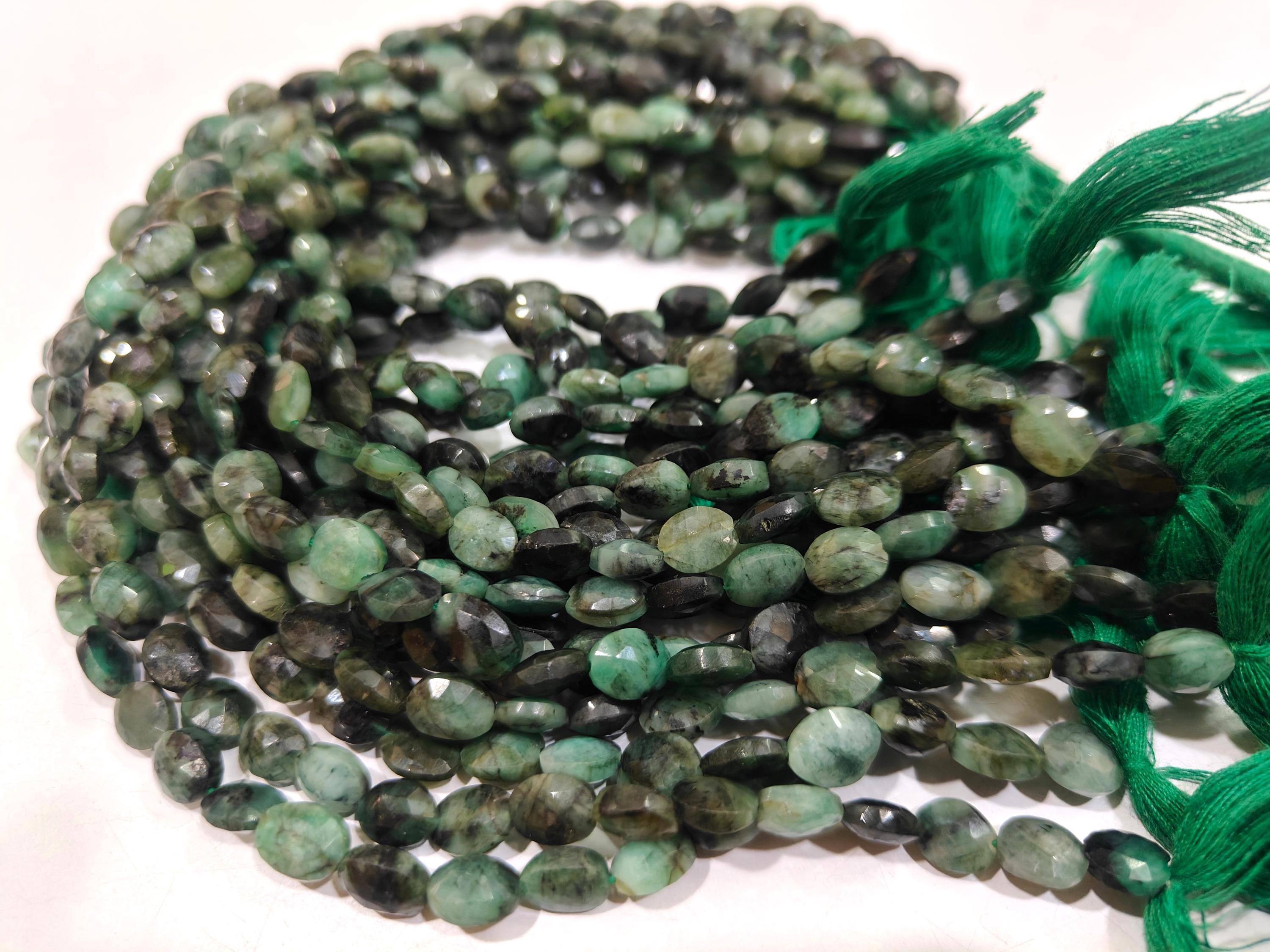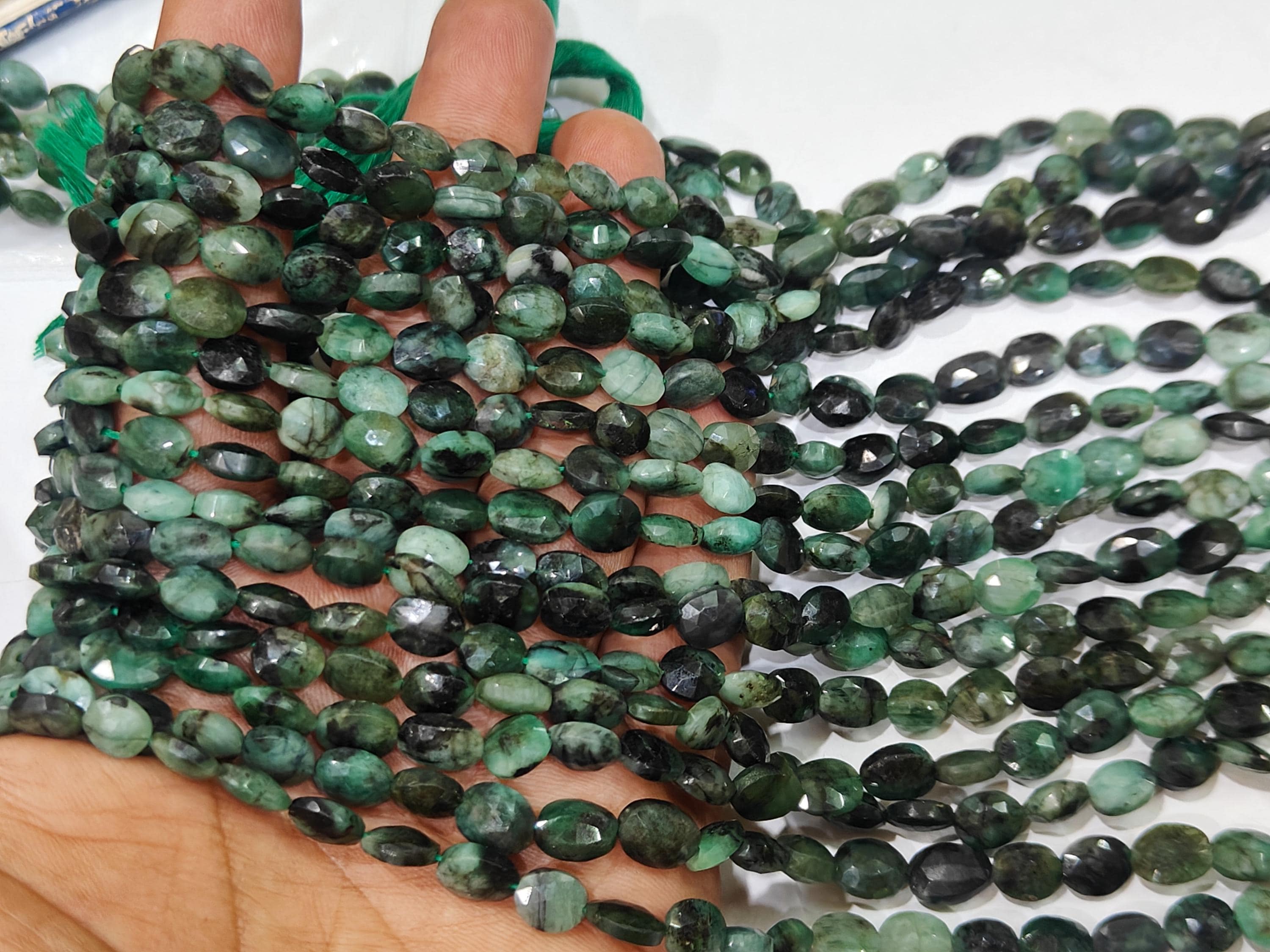 Natural Emerald Oval Faceted Briolette 8-9mm Beads Mani Shape Gemstone Beads sold per Strand 12 Inches Long