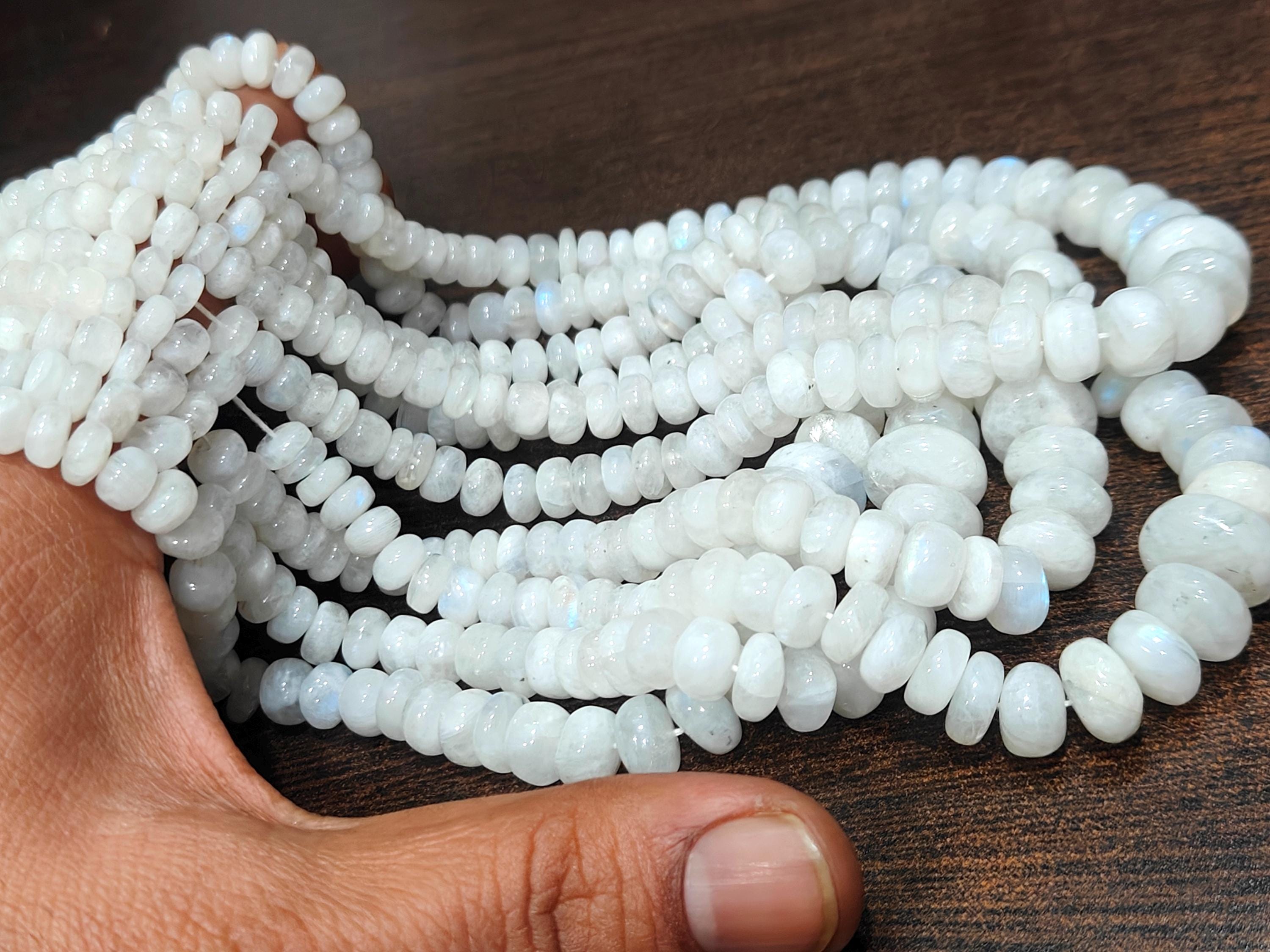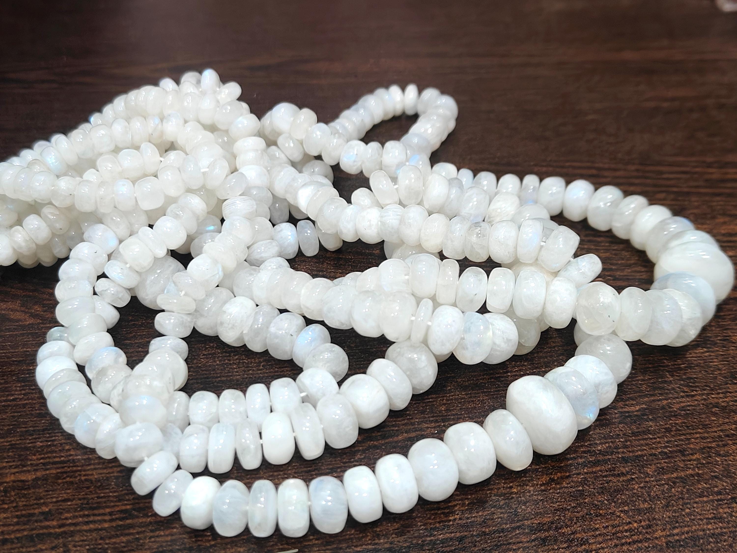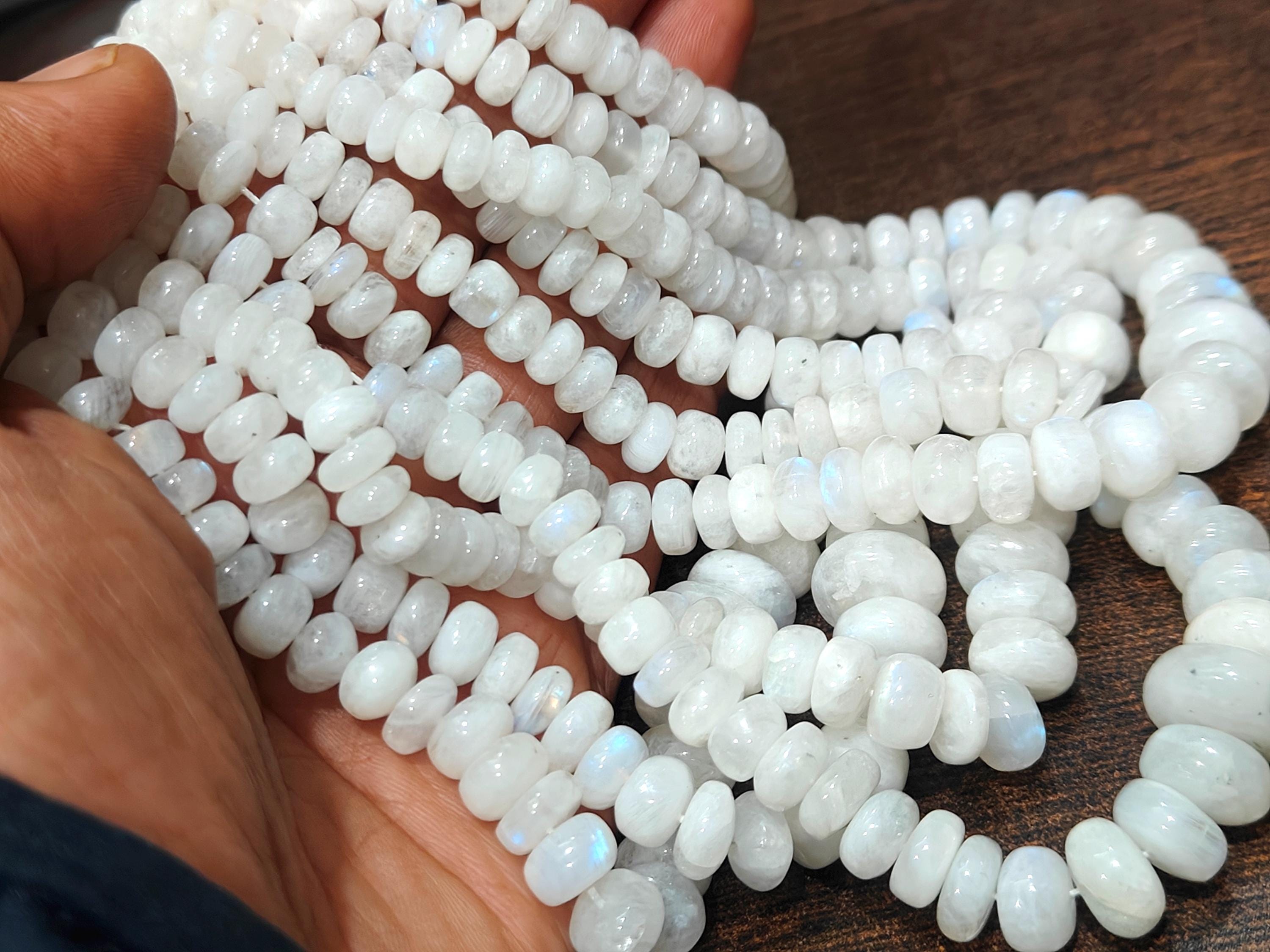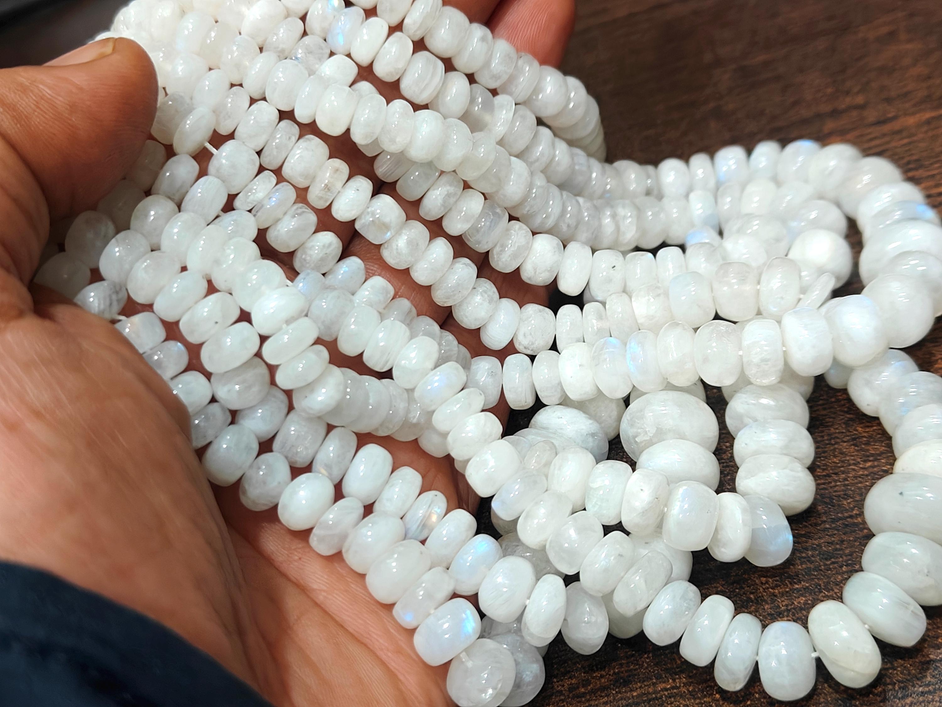 Natural White Rainbow Moonstone Rondelle Plain Smooth 6 to 12mm Graduated Beads Sold per strand 8 inches long