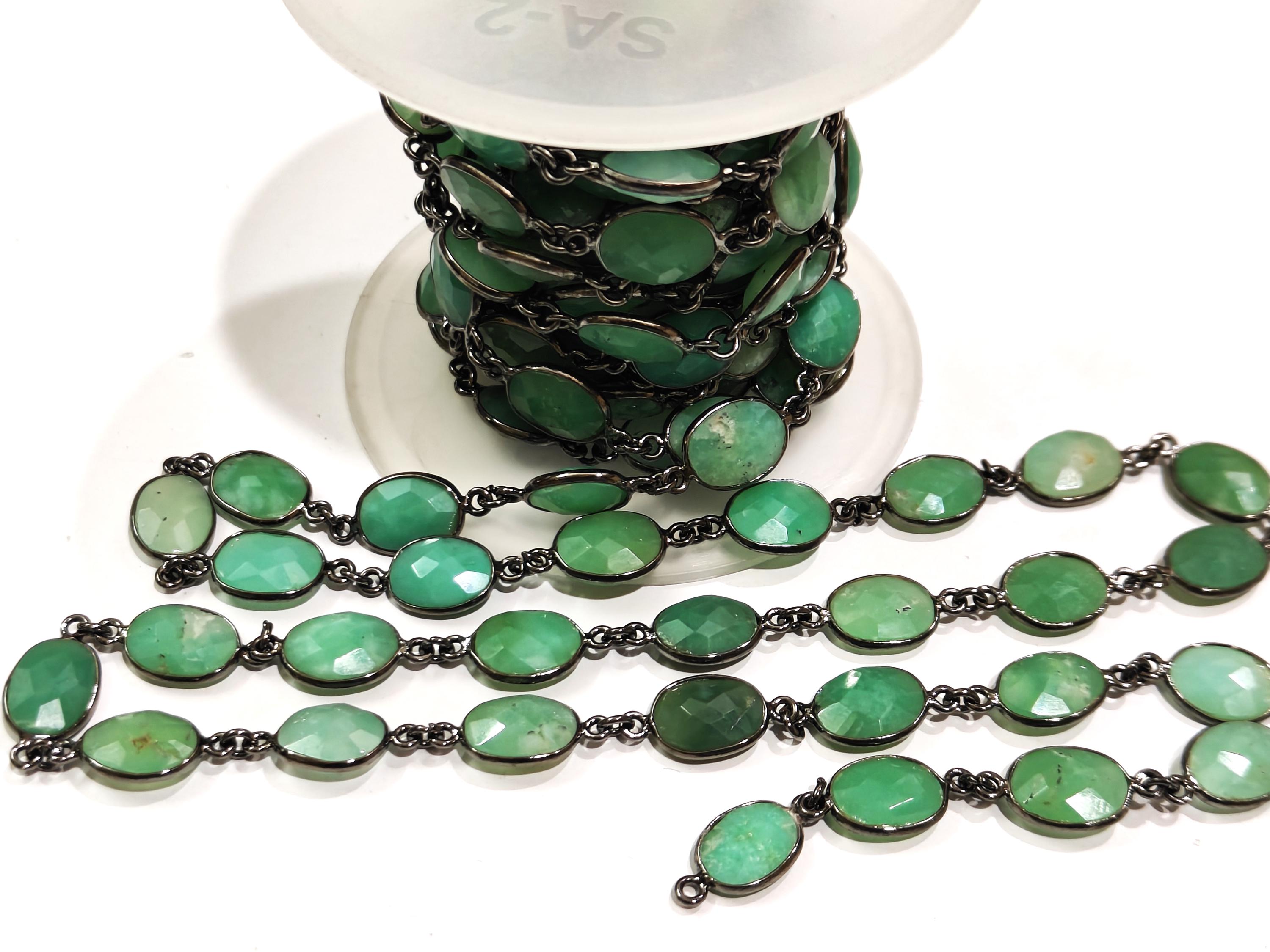 Natural Chrysoprase Oval Briolette Faceted 9x12mm Bezel Connector Chain Sold Per Foot