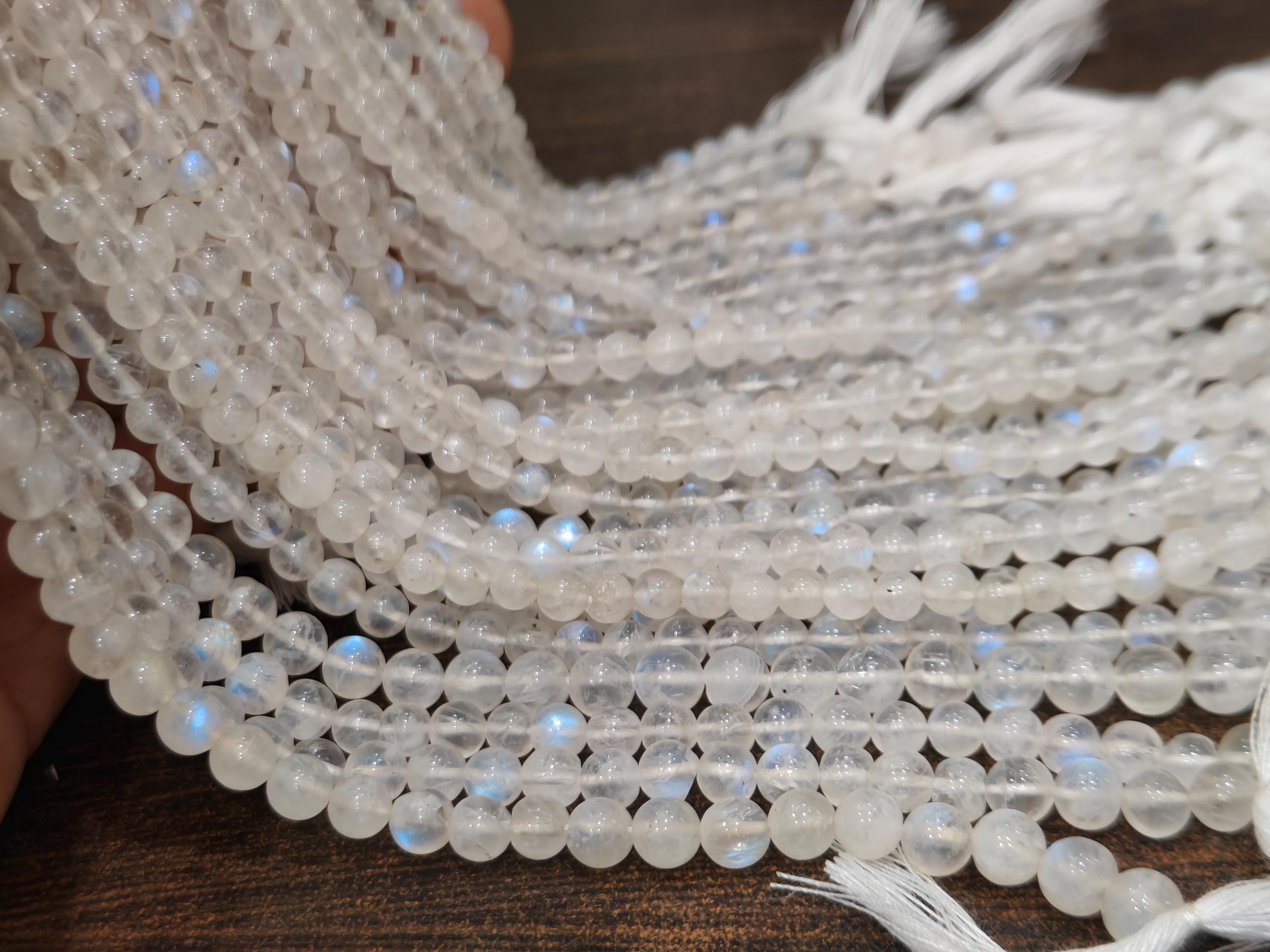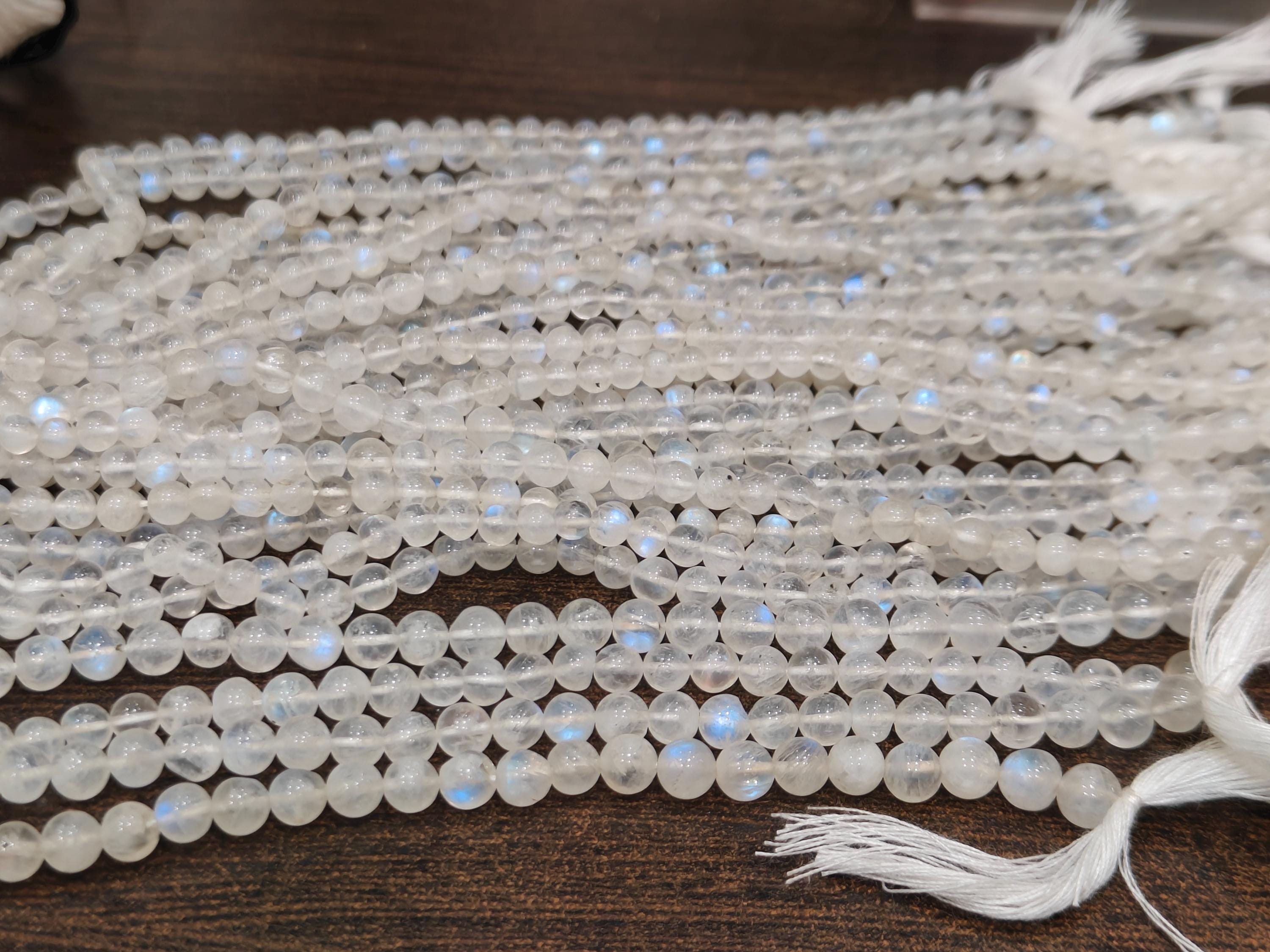 Natural white rainbow moonstone 4 to 6 mm round plain smooth beads sold per strand 8 inches