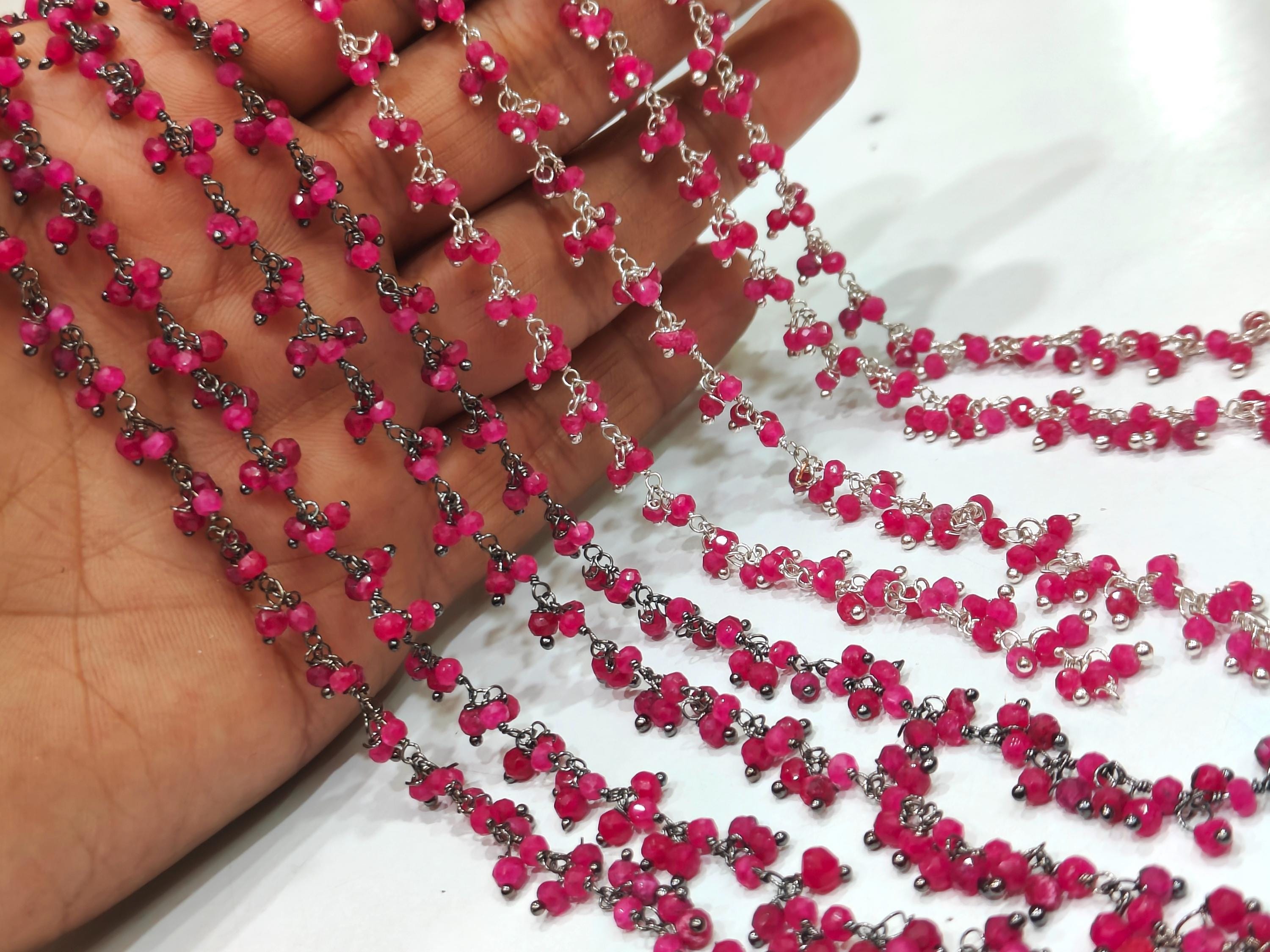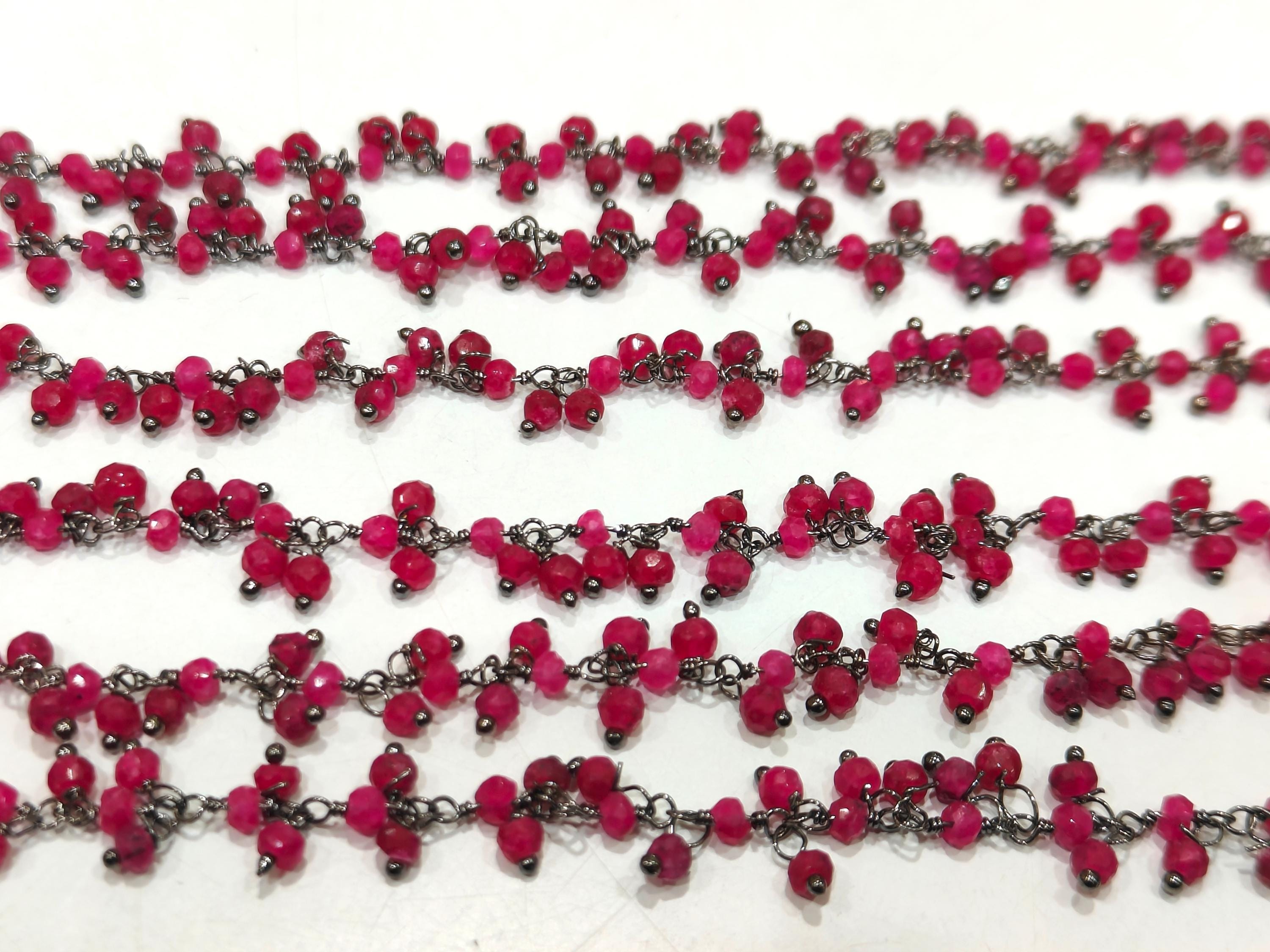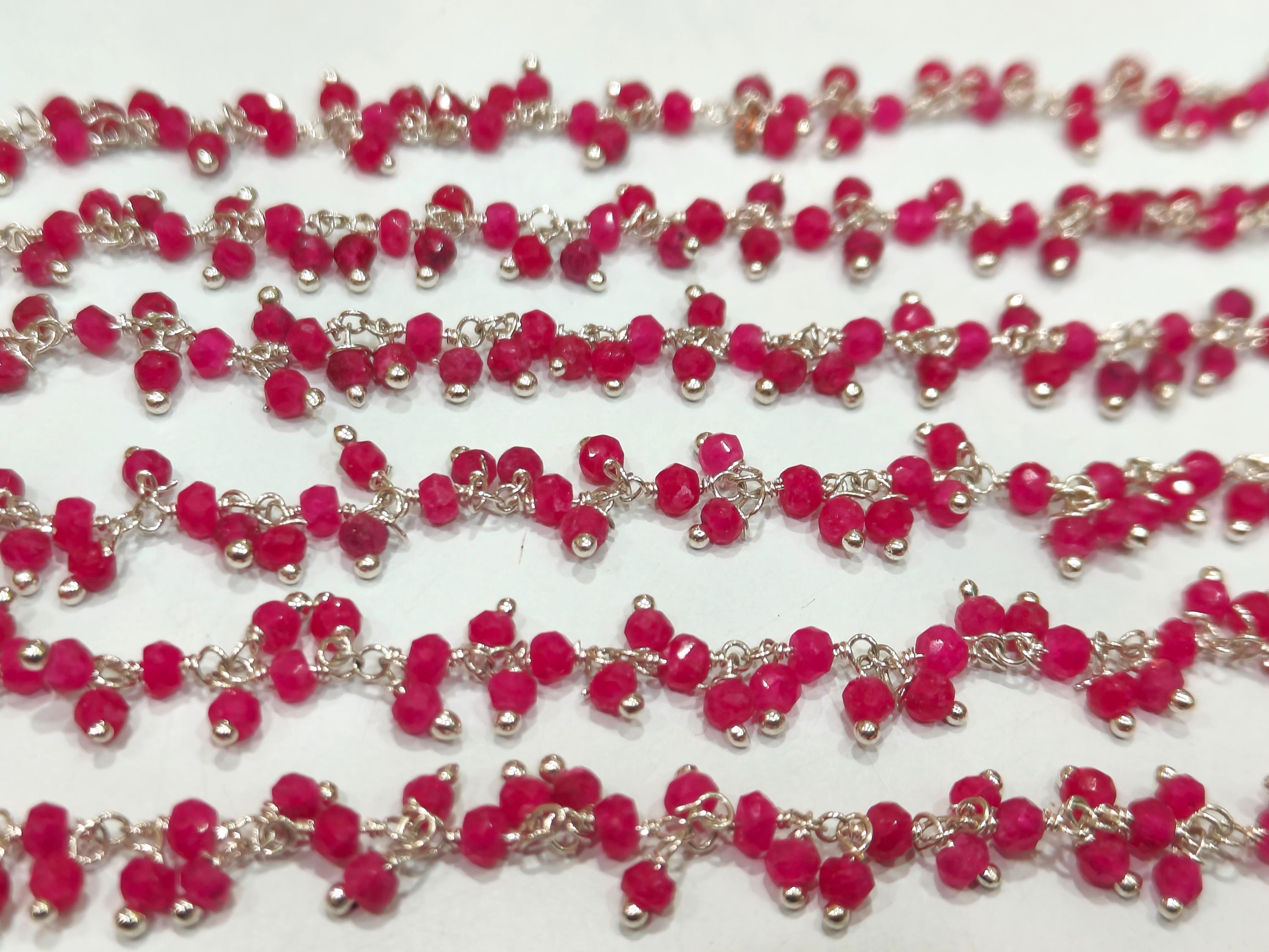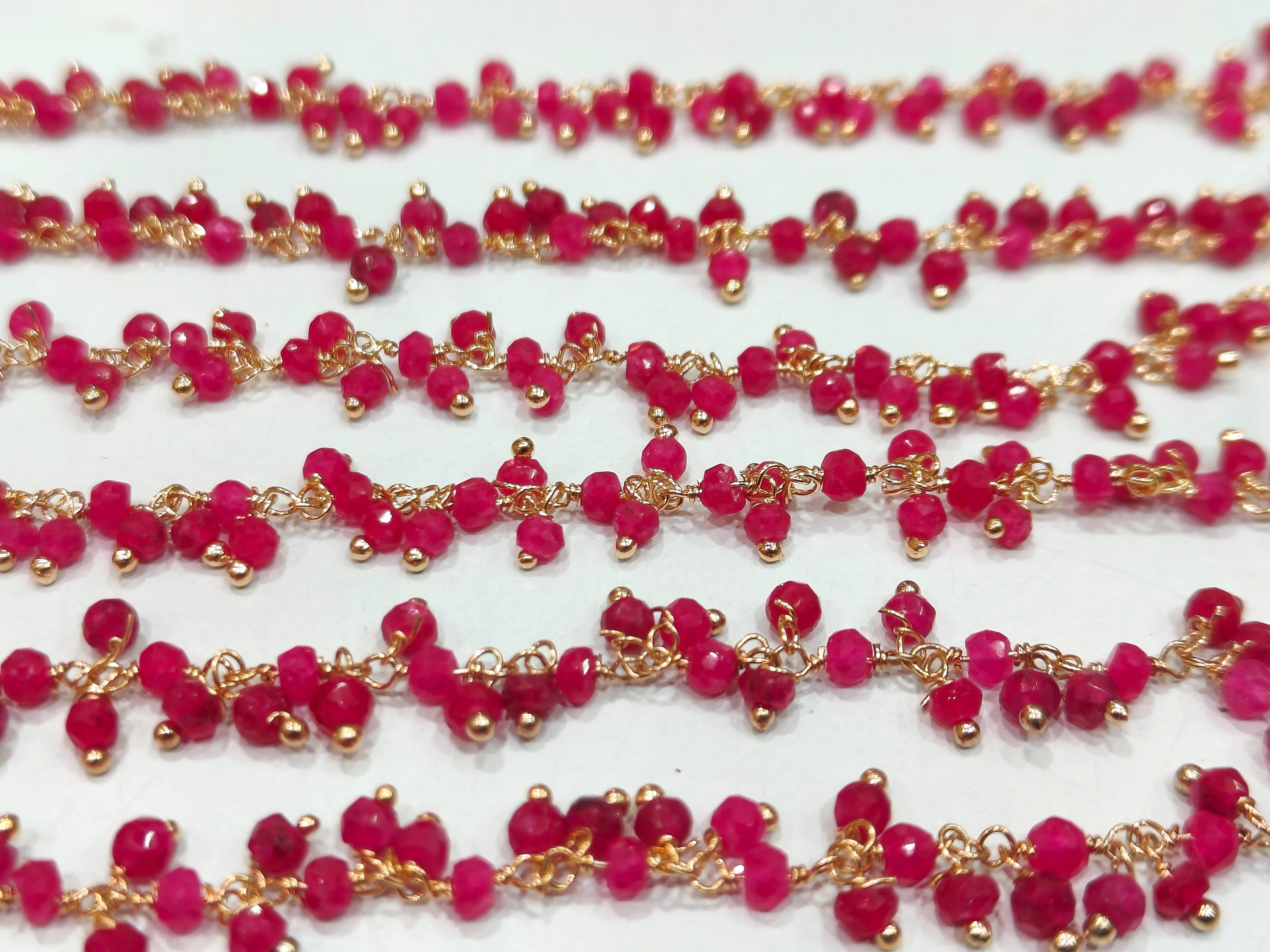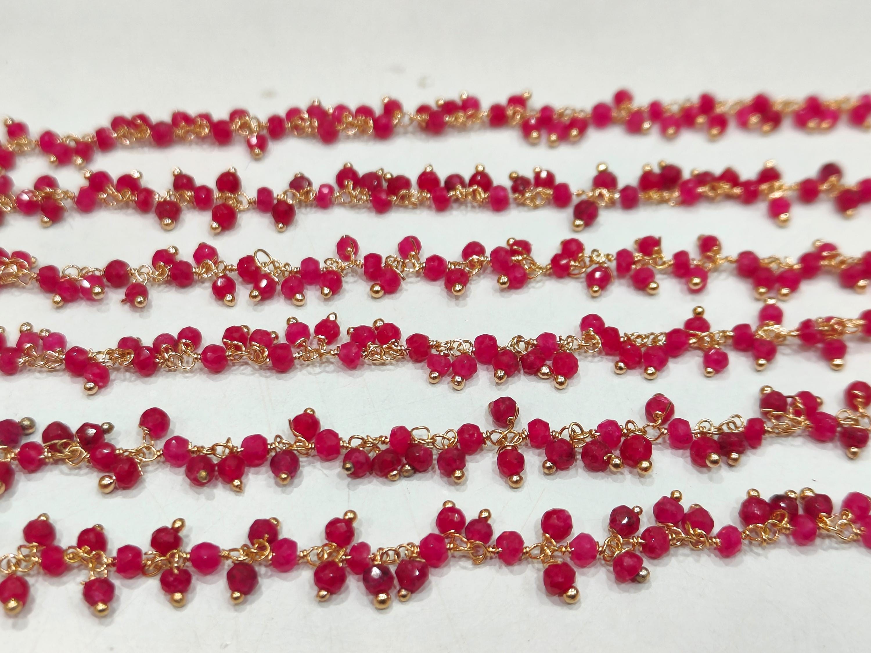 Ruby 3mm Rondelle Faceted Dangling Beaded Wire Wrapped Cluster Chains sold per foot