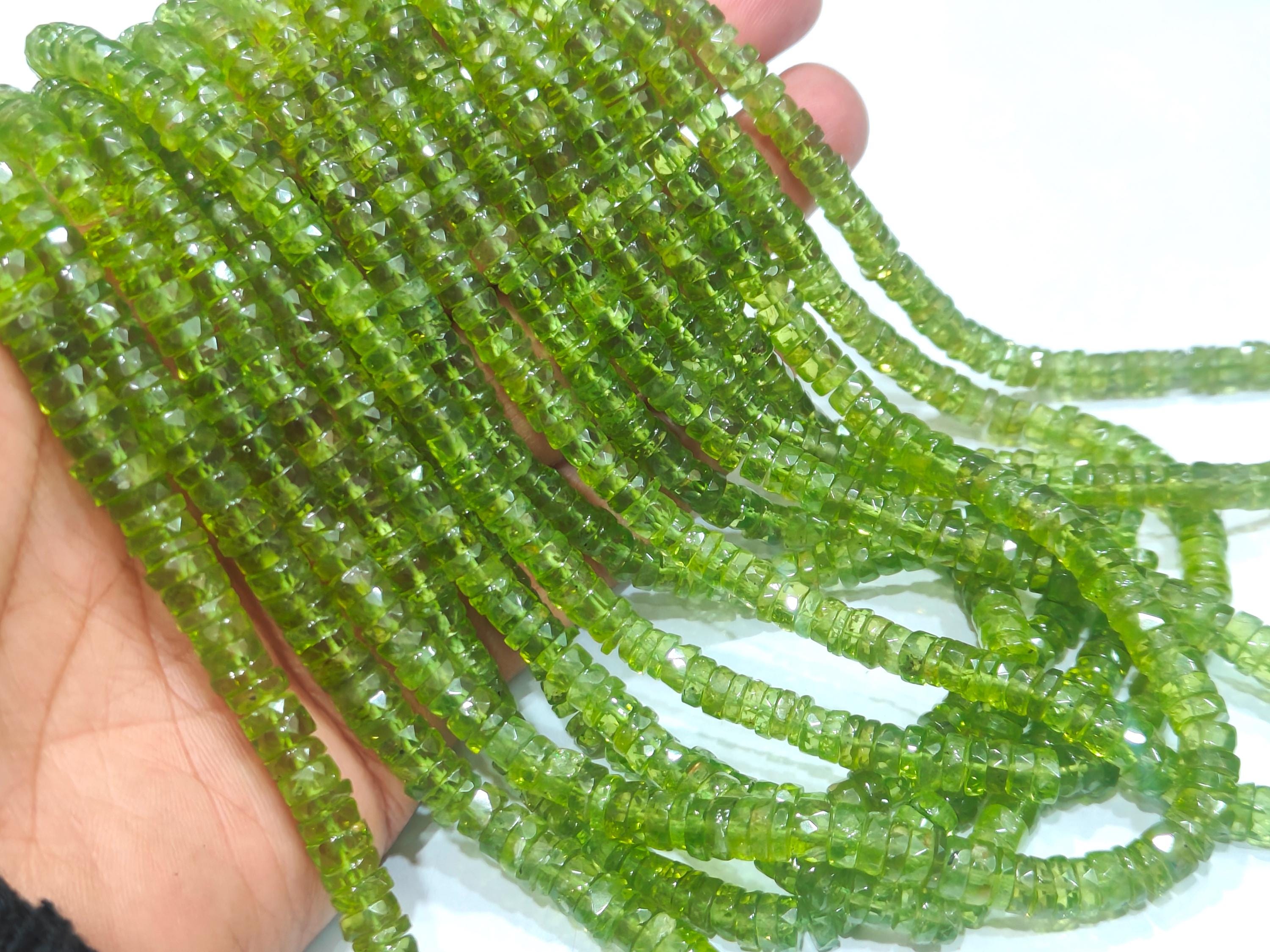 Natural Peridot Rondelle Faceted 5-6mmTyre Shape Beads Strand 8 inches long