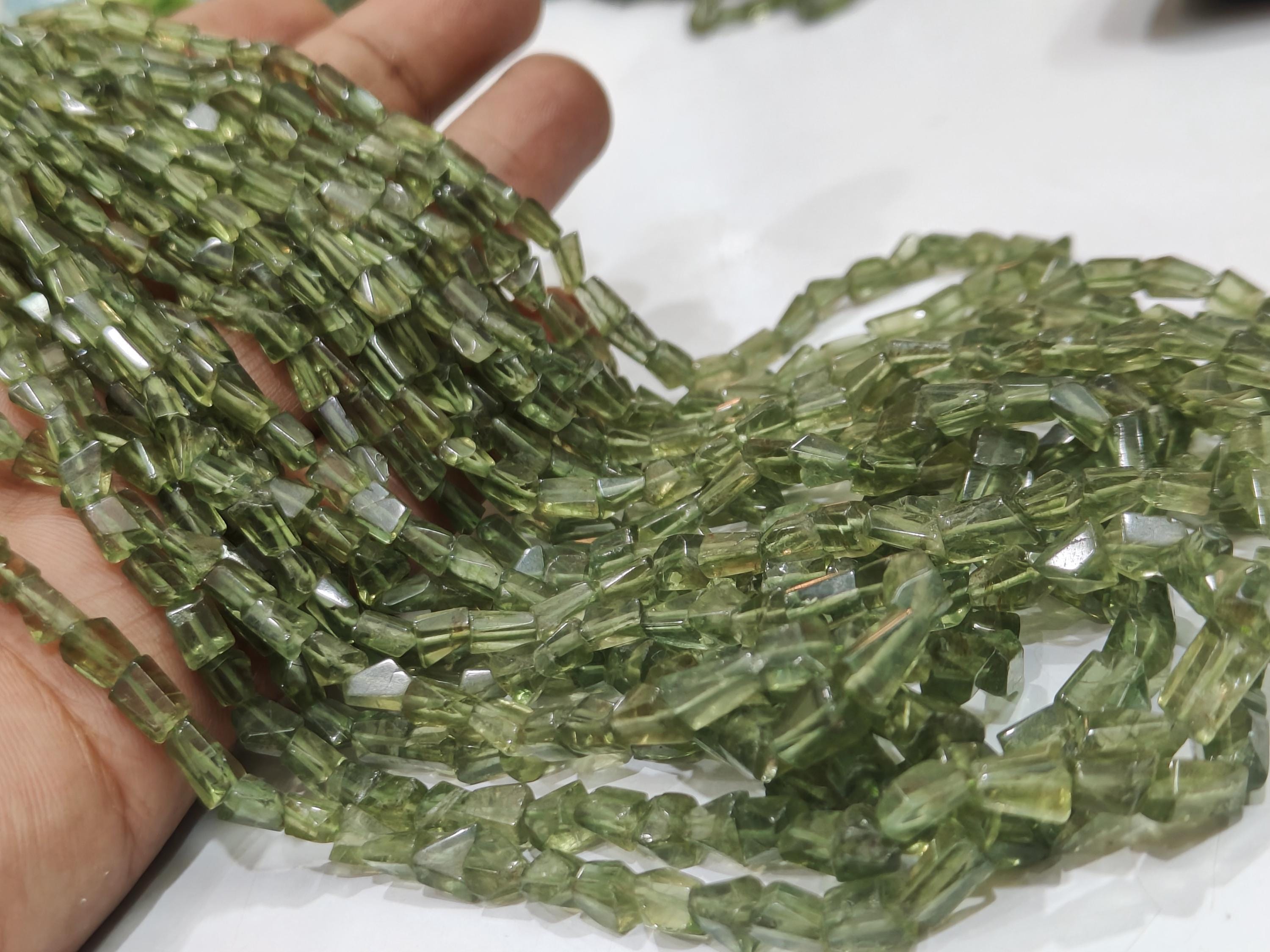 Natural Green Apatite Faceted Nugget Tumbled 5 to 8mm Beads Sold Sold Per Strand 8 Inches Long