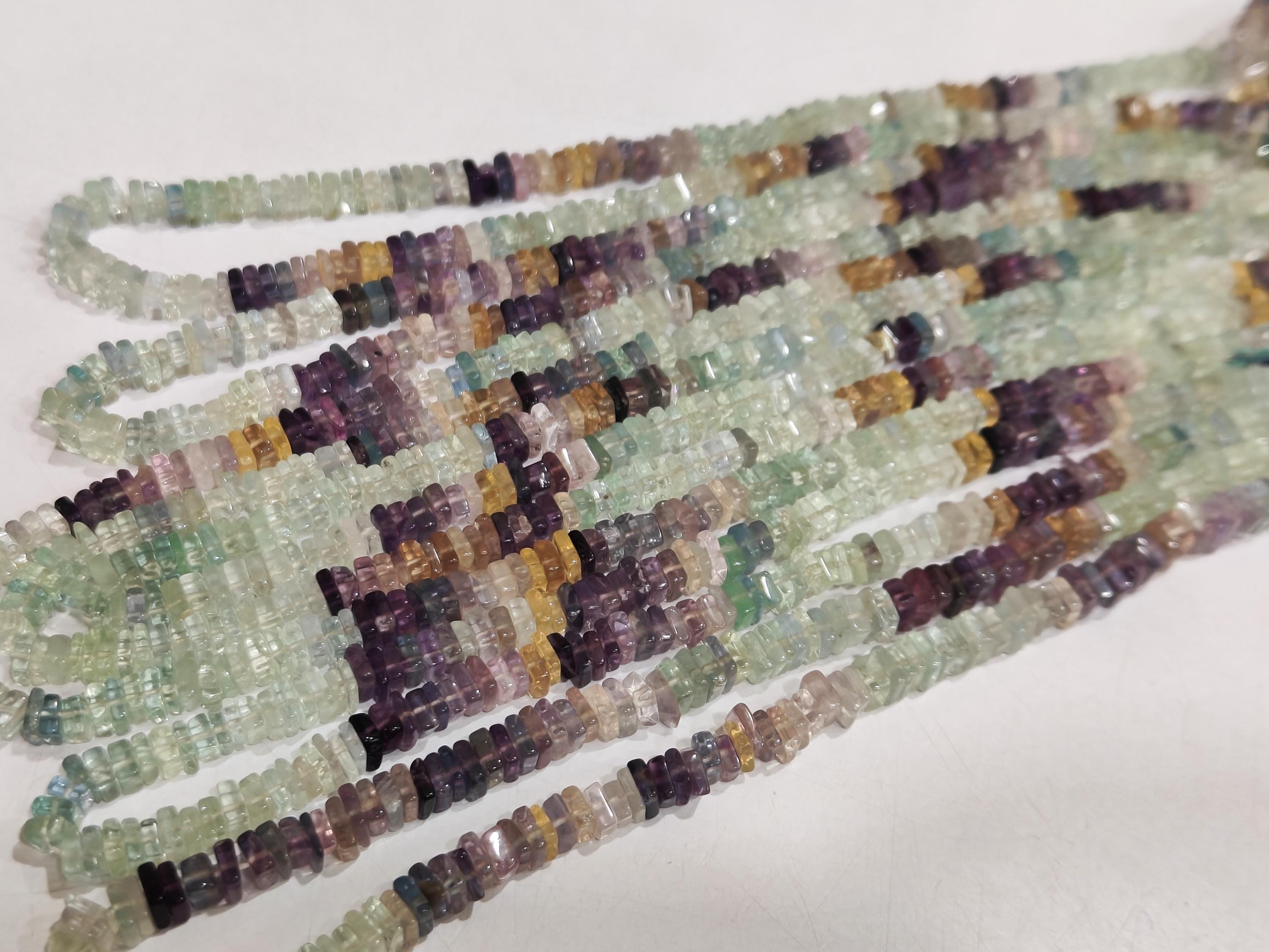 Natural Multi Fluorite Heishi Cut 4mm Square Beads Sold Per Strand 8 inches Long Great Quality Beads