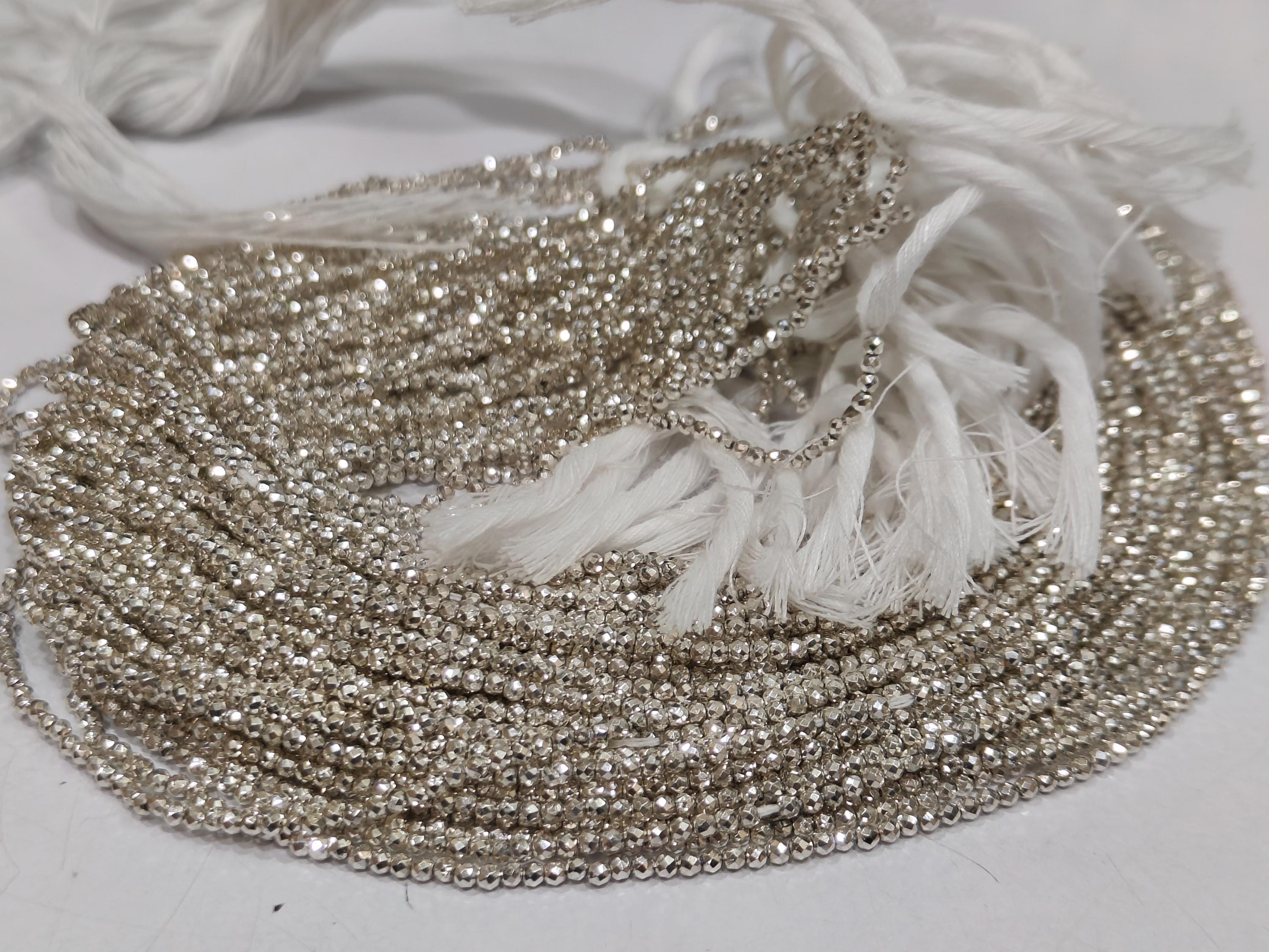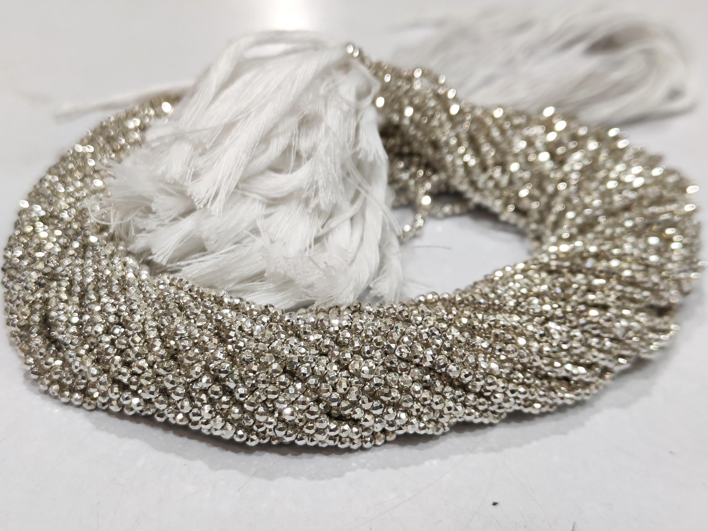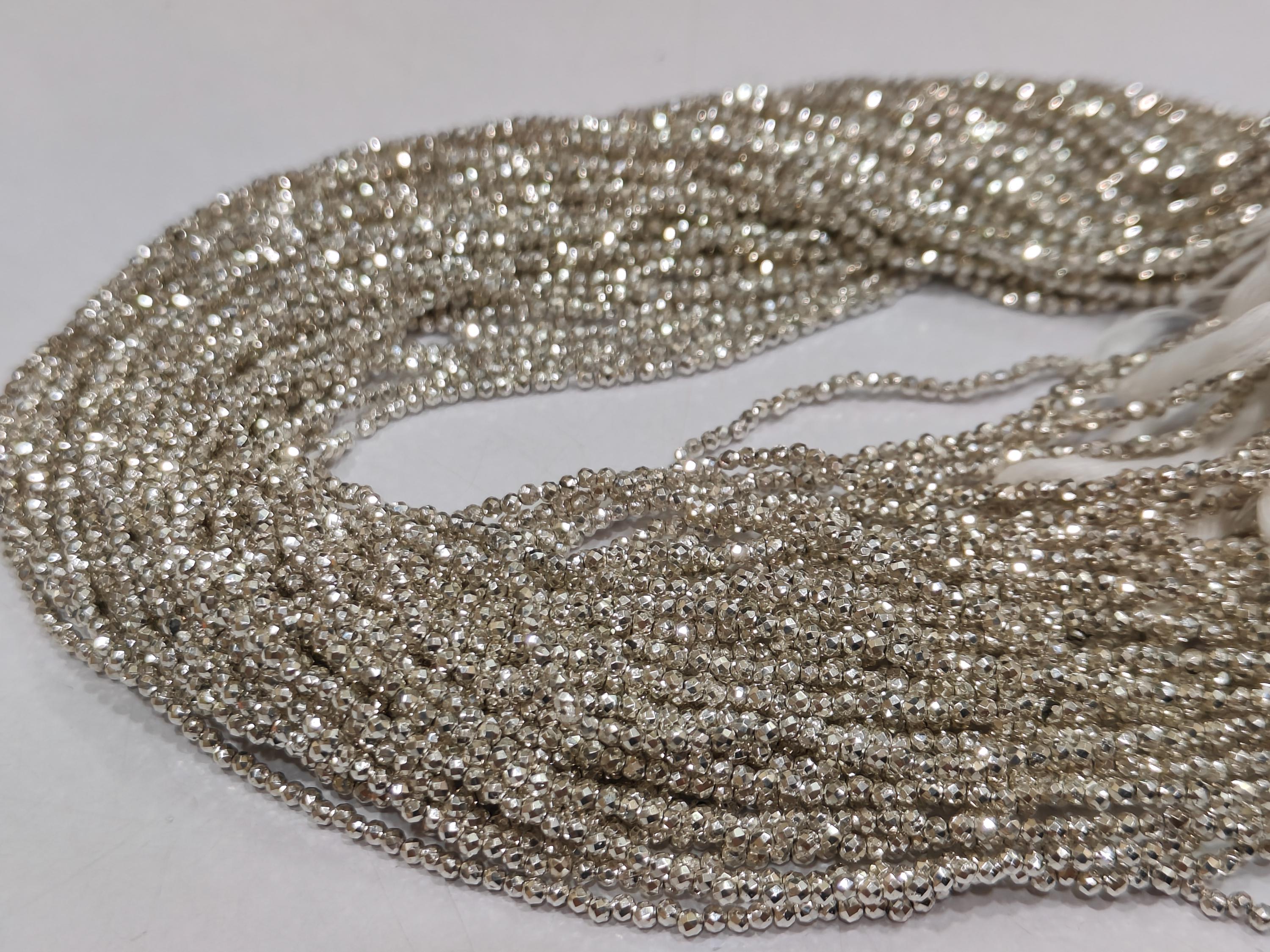 Natural Silver Pyrite Rondelle Faceted Beads 2mm Tiny Size sold Per Strand 12 inches Long beads Shape : Rondelle