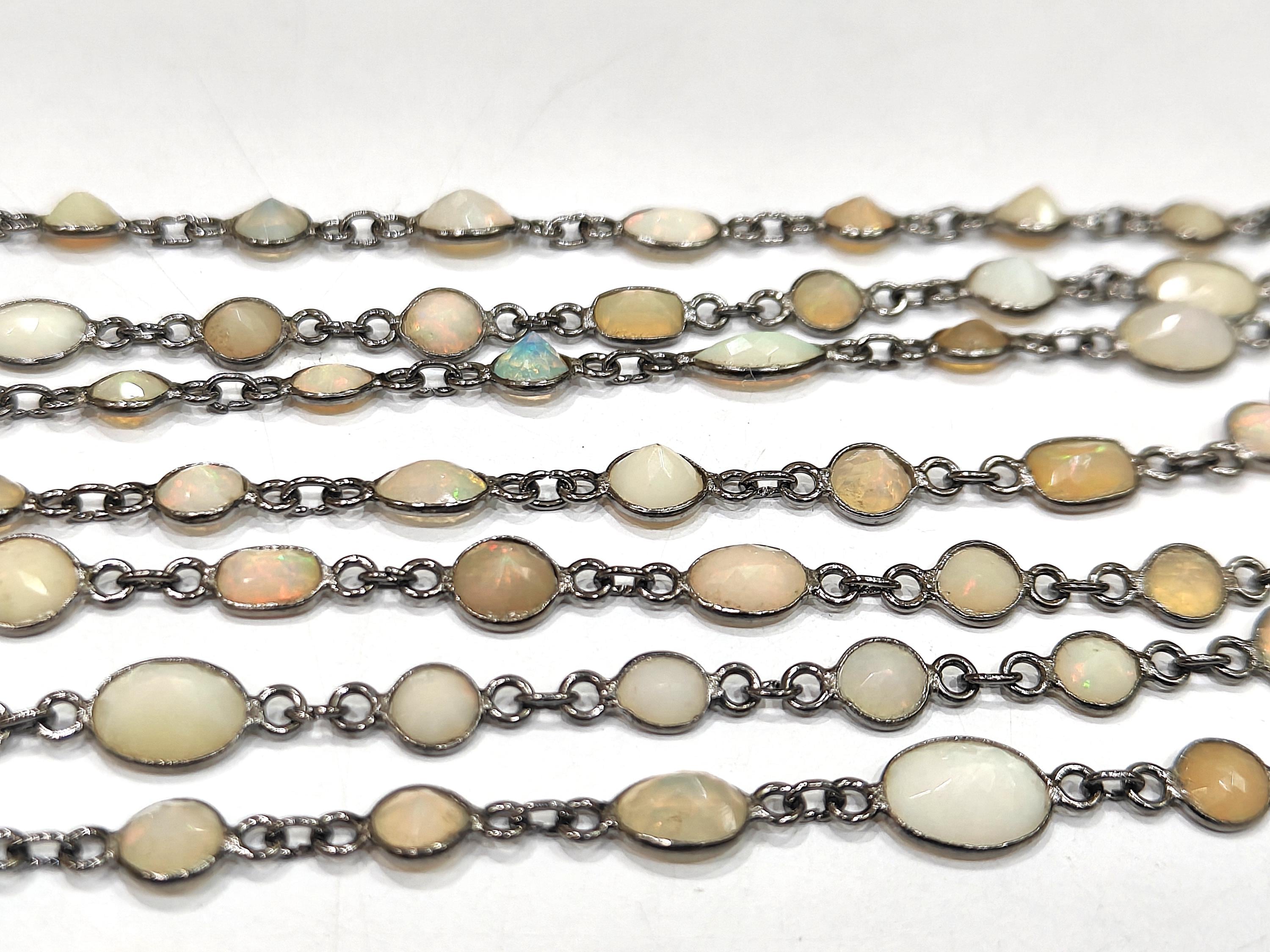 Natural Ethiopian Opal 5 to 10mm Briolette Mix Shape Bezel Connector Chain Sold per foot Flashy Opals