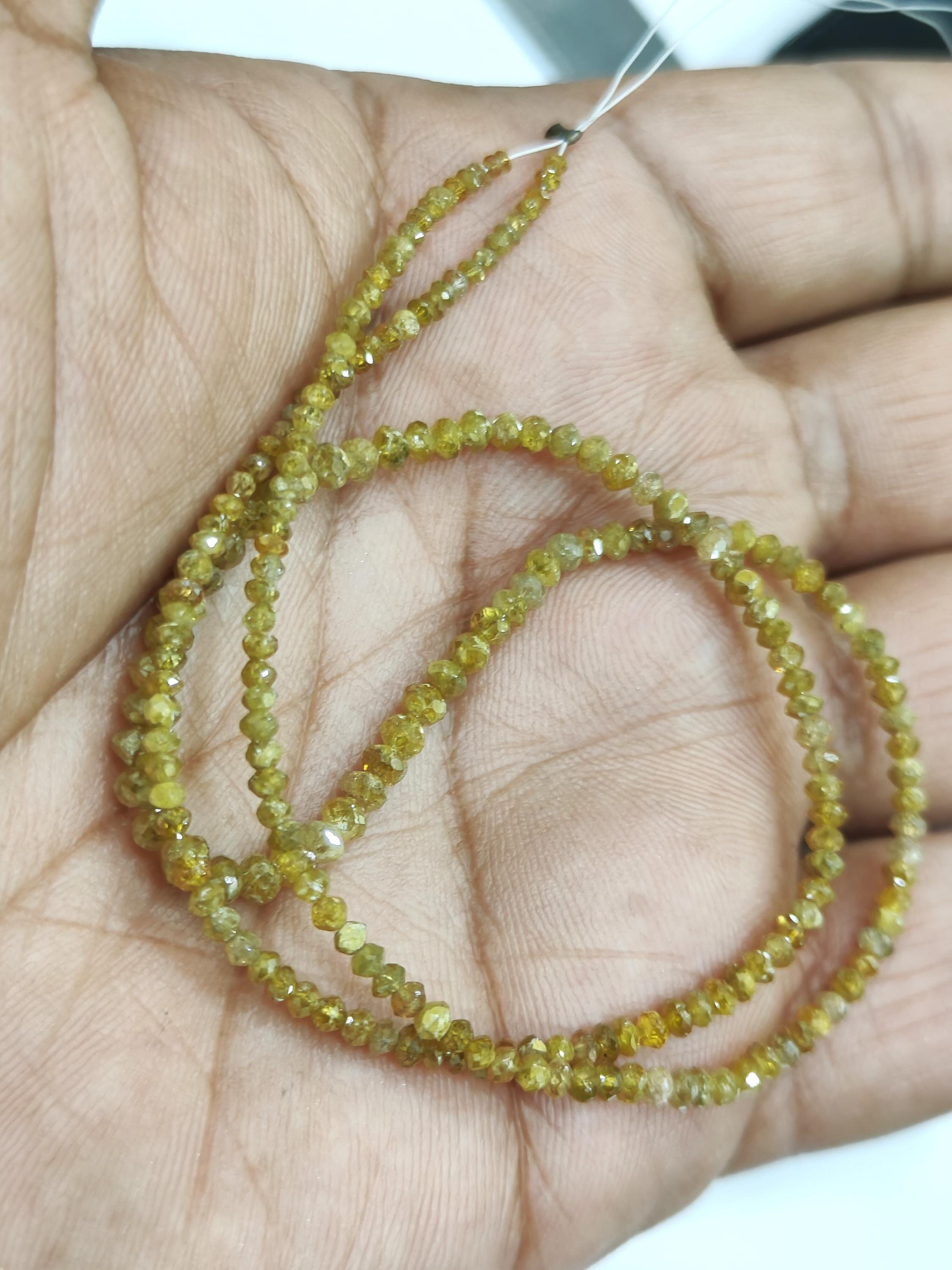 Natural Yellow Diamond Rondelle Faceted Beads Certified Diamond beads Size 1.5mm to 3mm CHOOSE LENGTH