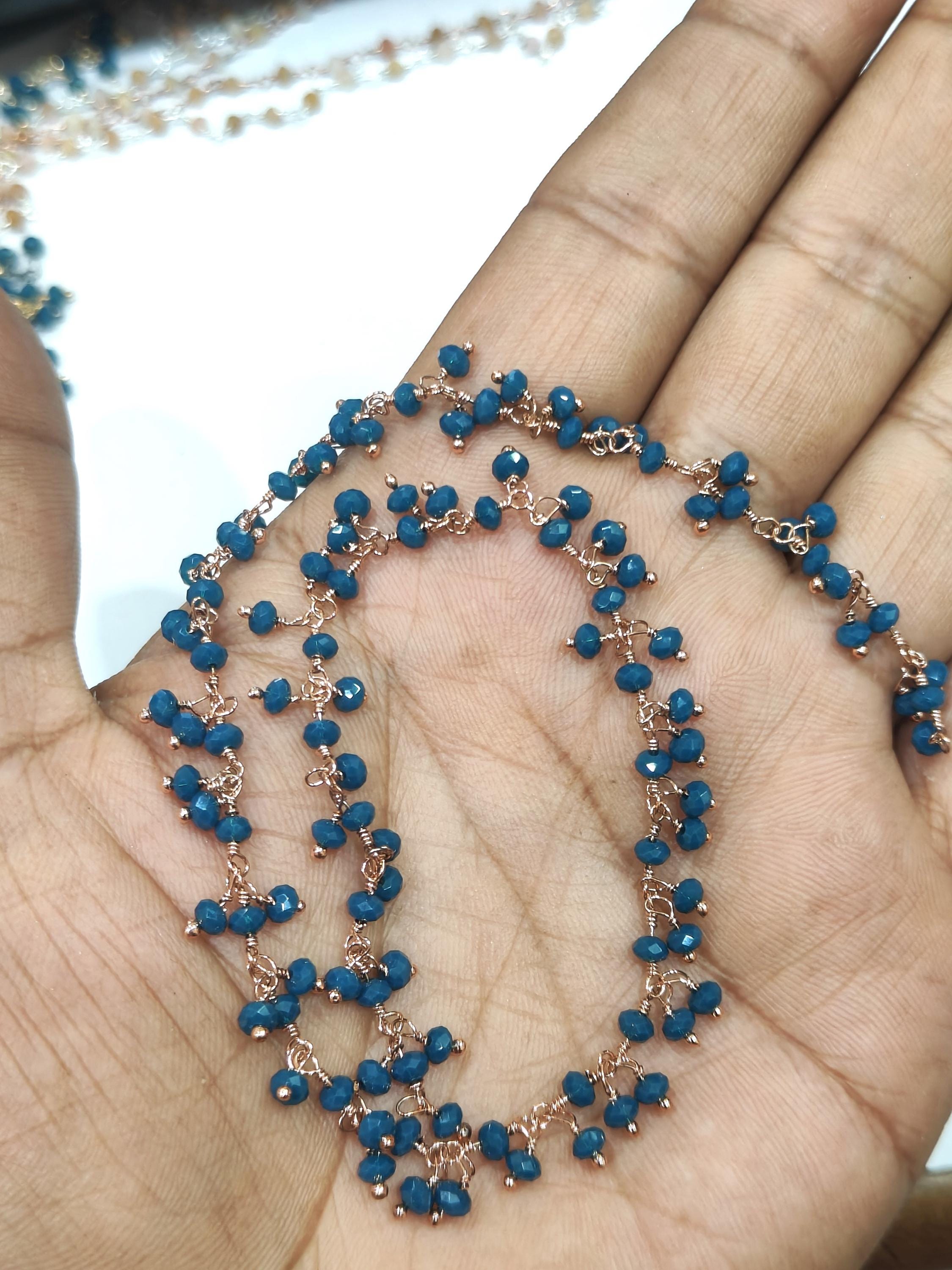 1 Foot-: Neon Apatite Rondelle Faceted 3-4mm Beaded Cluster Dangling Rosary Chain Wholesale Price Gemstone Chain SOLD PER FOOT