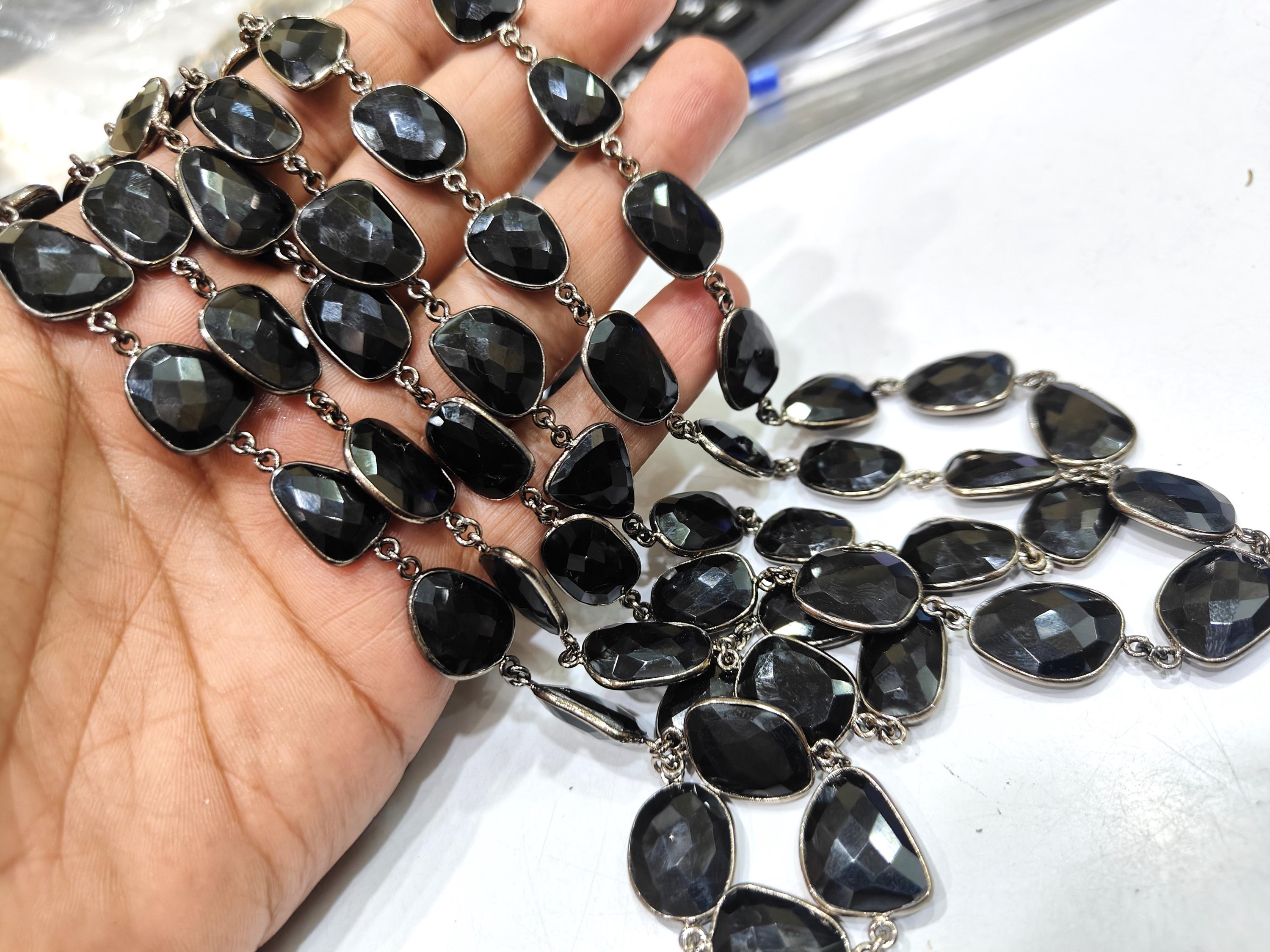 Natural Black Spinel Free Shape Briolette Faceted Bezel Connector Chain 15 to 20mm Plated Sold Per Foot High Quality Stone Wholesale price Jewelry making Connector chain