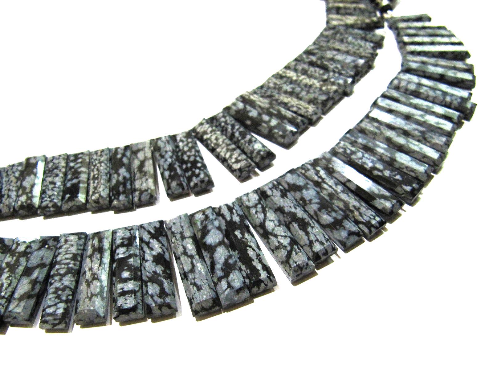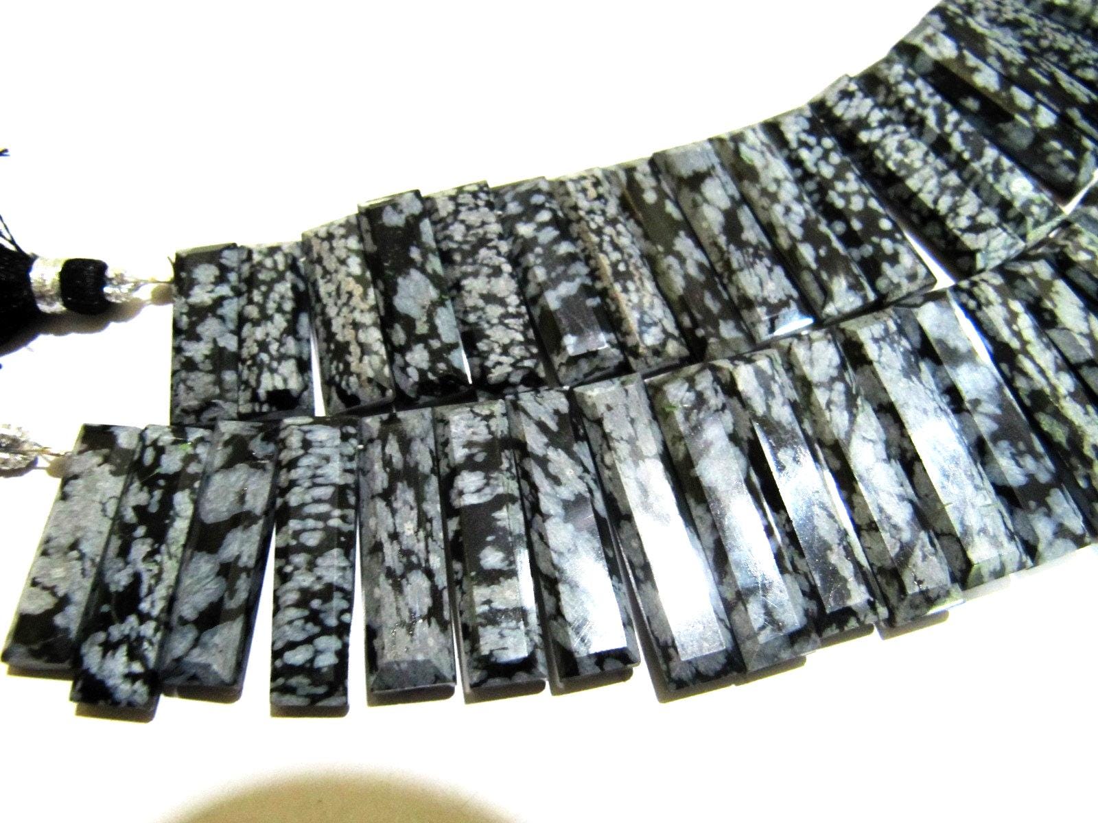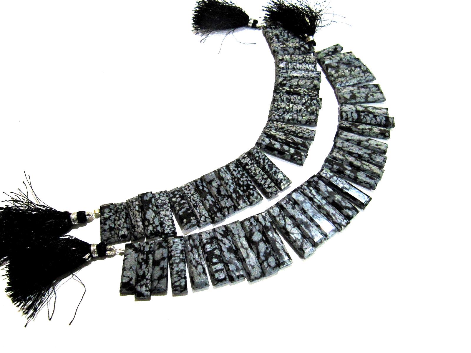 Natural Black Obsidian Long Baguette Shape Beads, Side Drilled Briolette Beads Size 25 to 30 mm long, Strand 8 inches Graduated Beads, 30 to 35 Beads Per Strand