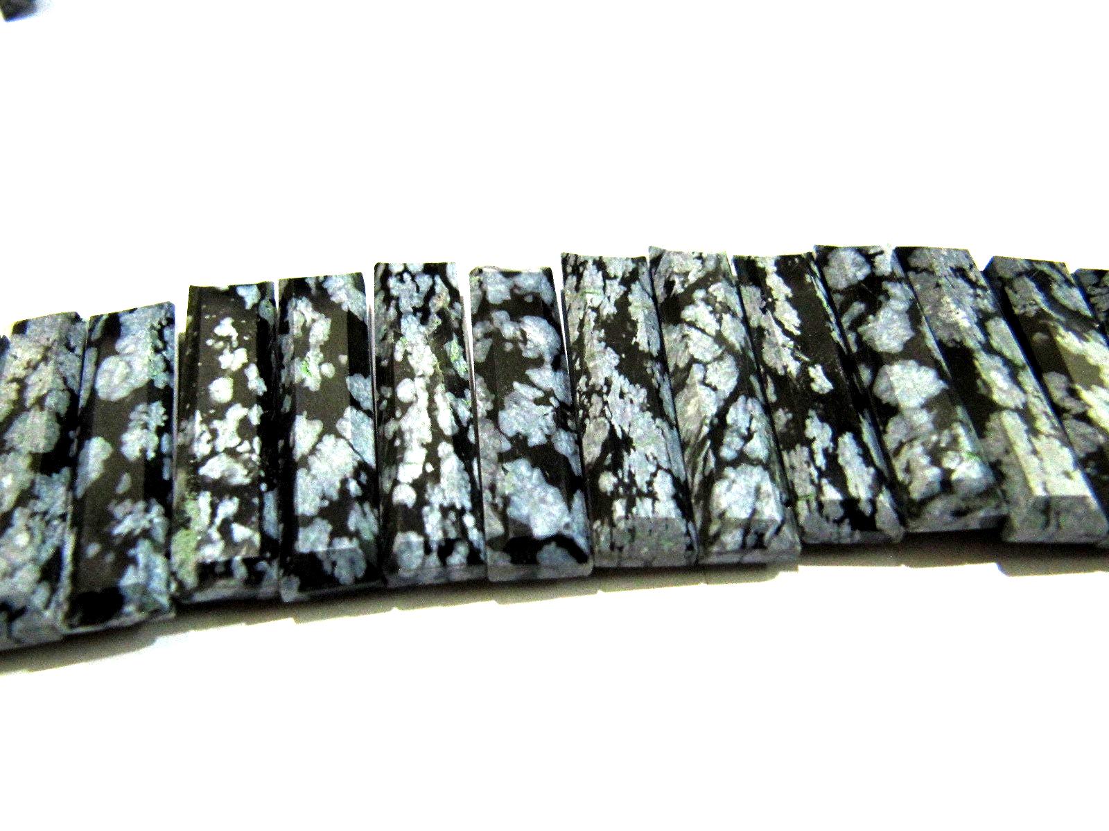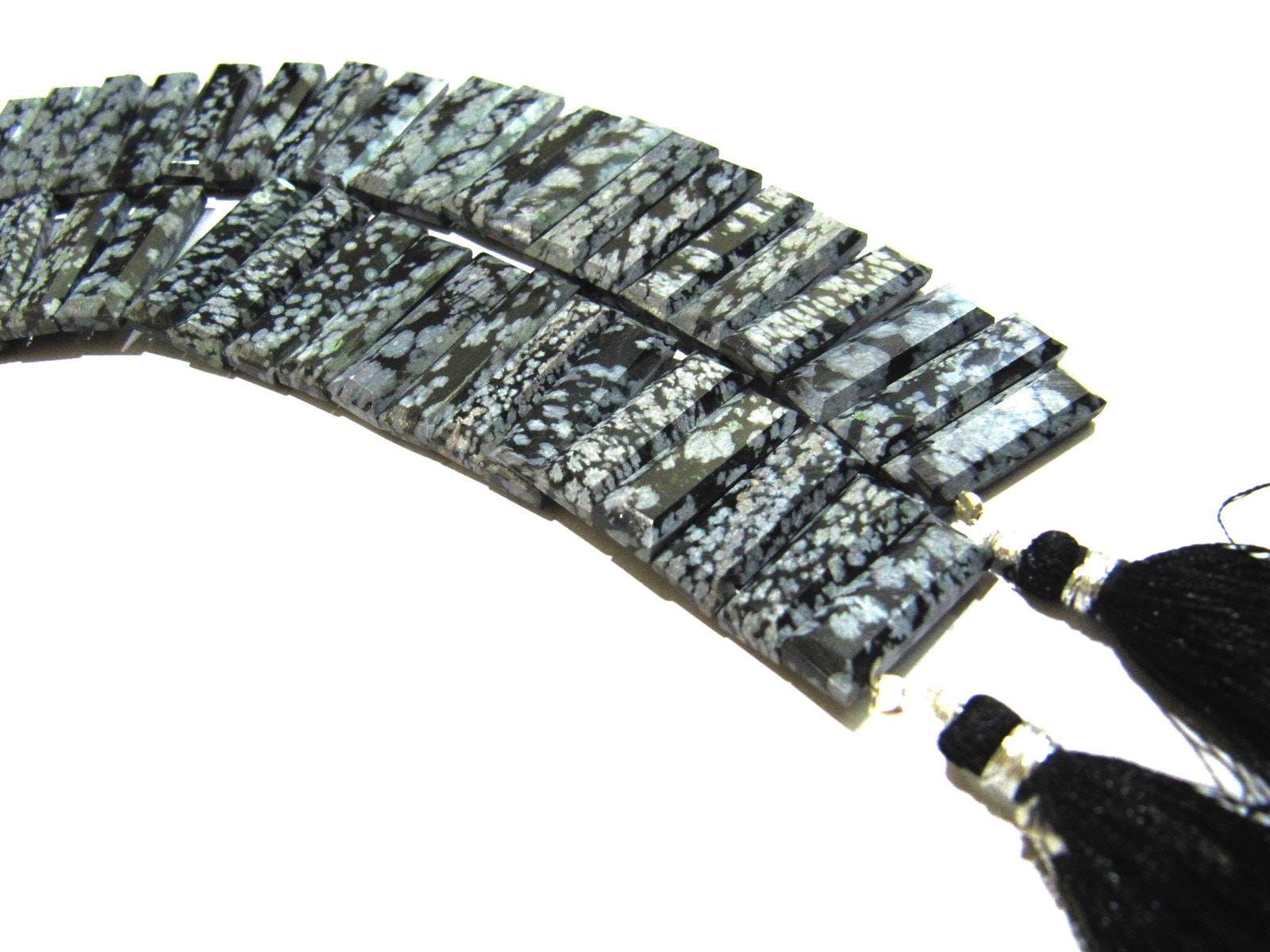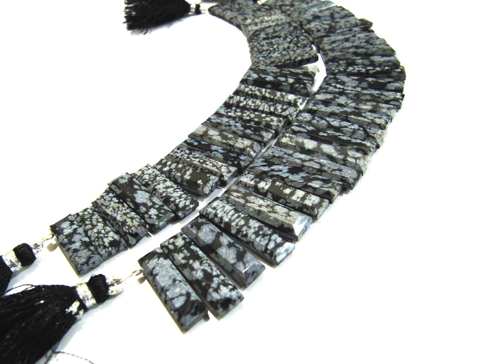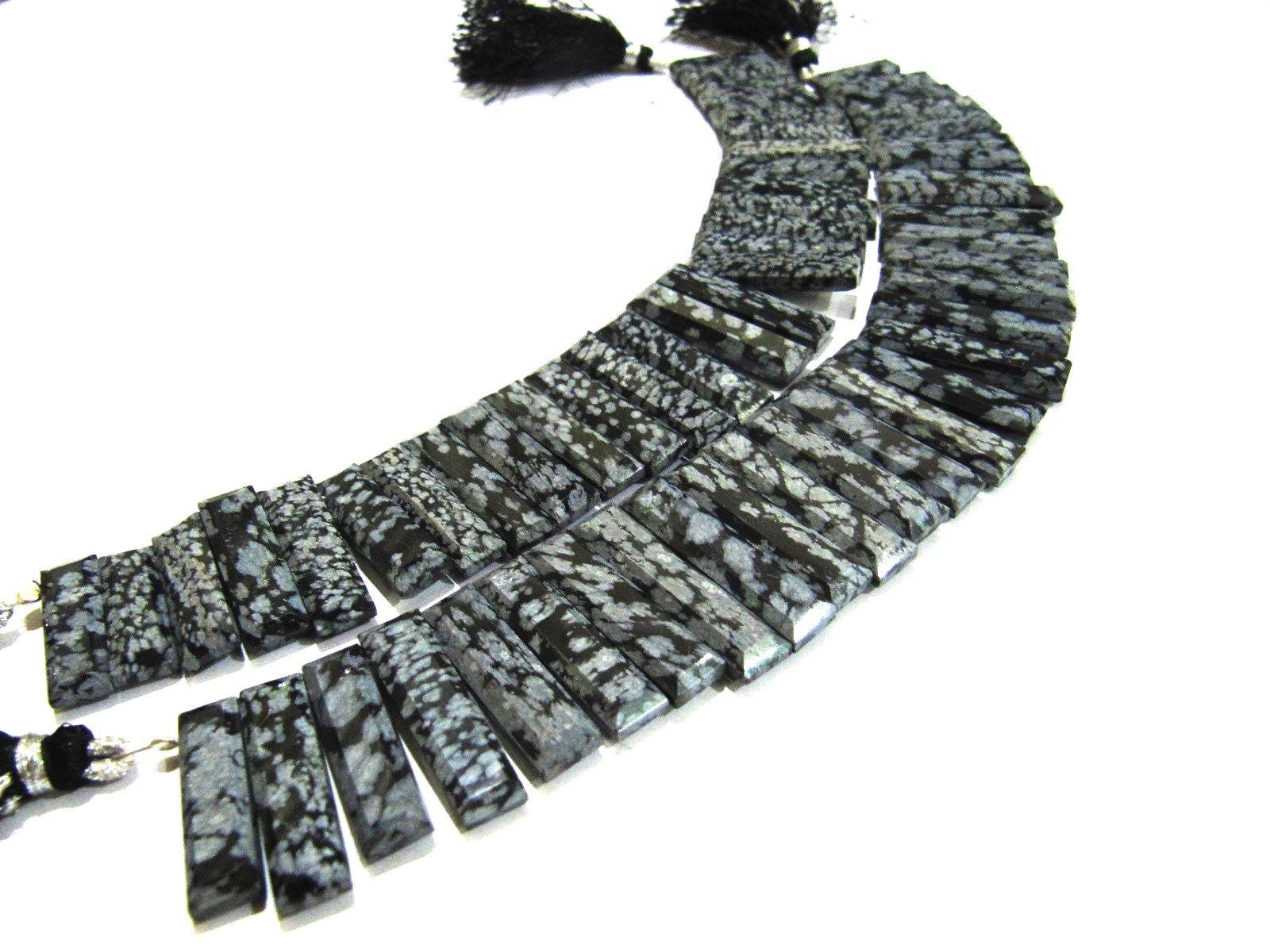 Natural Black Obsidian Long Baguette Shape Beads, Side Drilled Briolette Beads Size 25 to 30 mm long, Strand 8 inches Graduated Beads, 30 to 35 Beads Per Strand