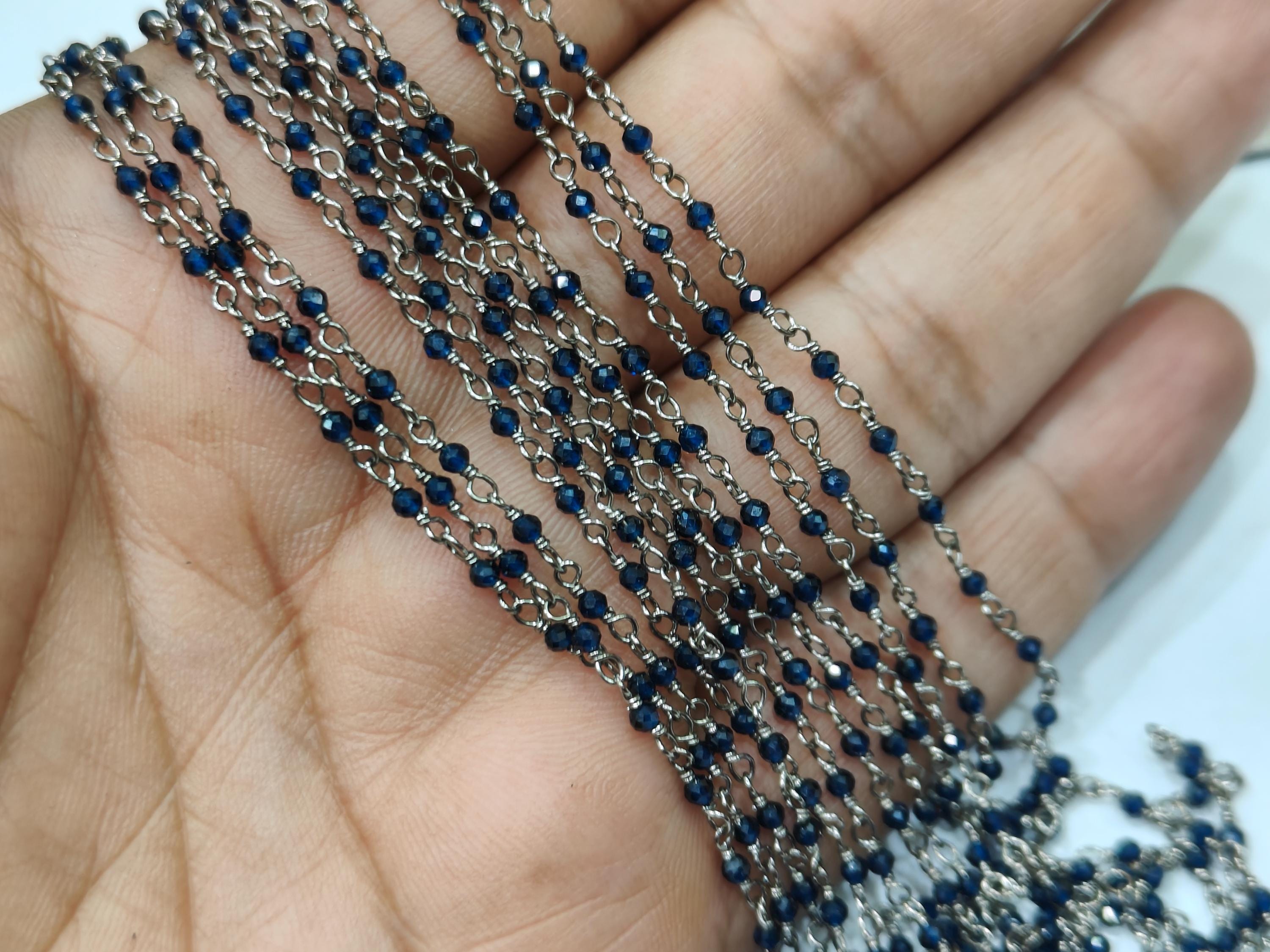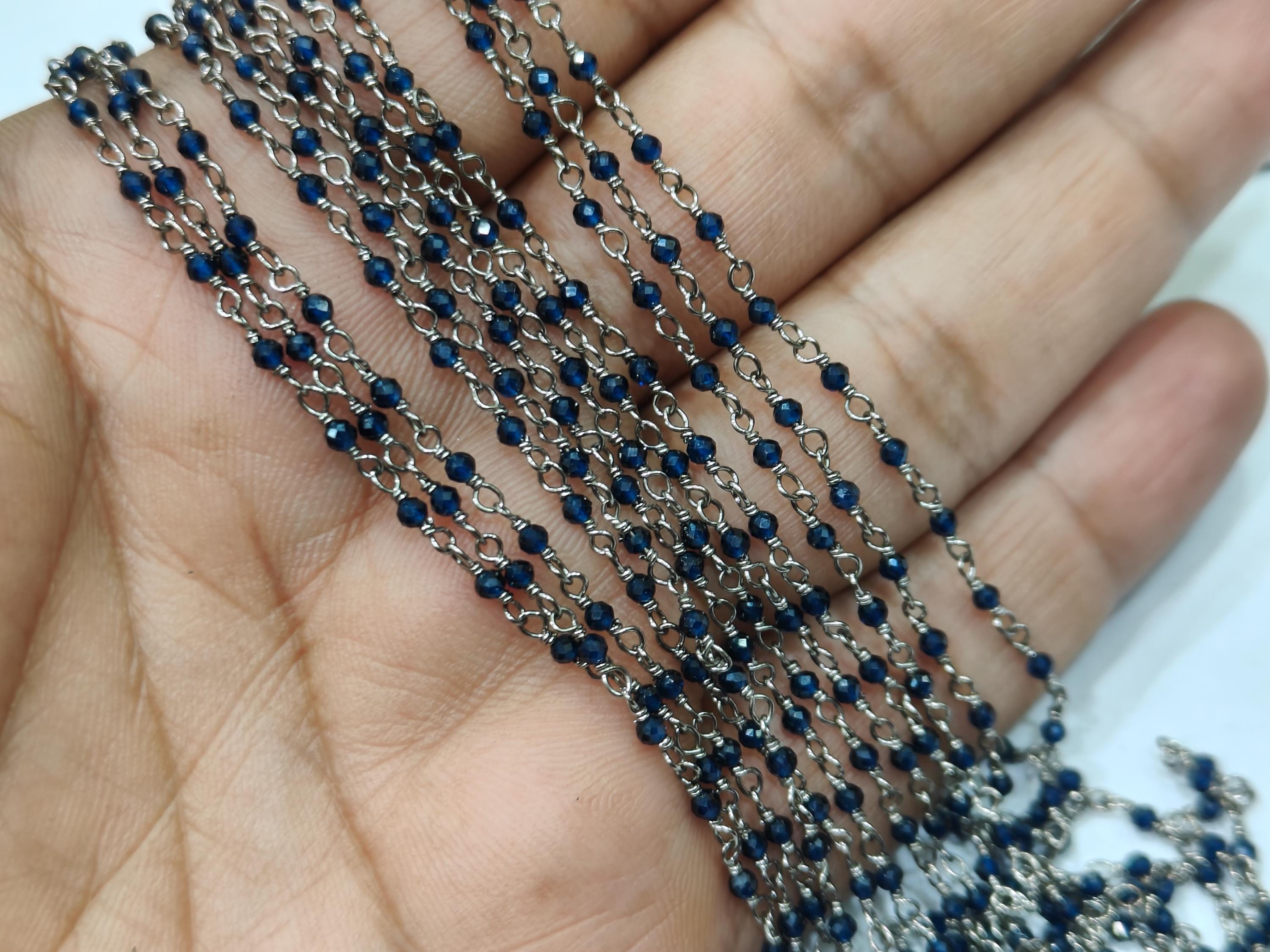 Fancy Blue Sapphire Quartz Rondelle 2mm Faceted Beaded Rosary Chain Top Quality Wholesale Jewelry Making chain Sold Per Foot