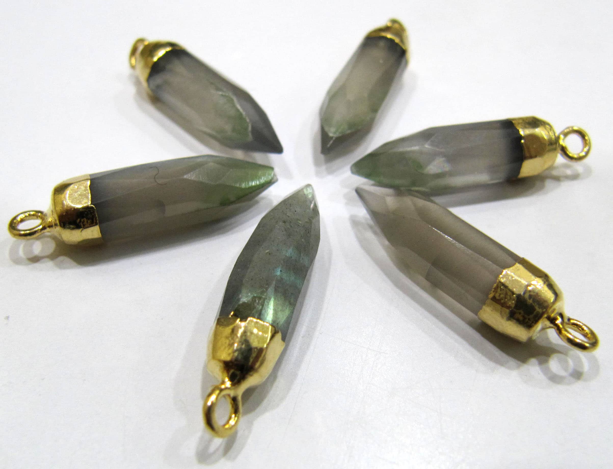 2Pc.- Grey moonstone Bullet Charm Pointer Pendant Single Loop Connector Charm Electroplated approximately Wholesale Prices Jewelry Making Connector