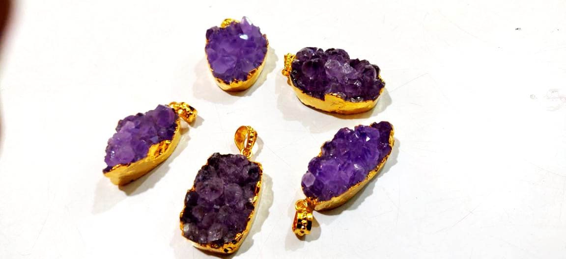 Natural Amethyst Raw Druzy Pendants , 24 Kt Gold Electroplated Heart Shape Druzy Pendant , Unique And Rare Gemstone Jewelry Sold Per Piece ,Wholesale Prices