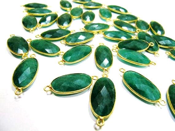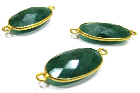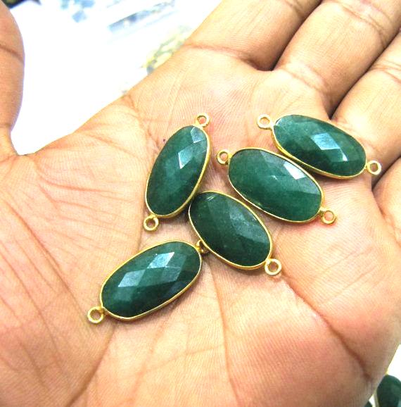Emerald Oval Shape Briolette 12x22mm Connectors Double Loop Bezel Plated Bezel/ Briolette Jewelry Making Connectors