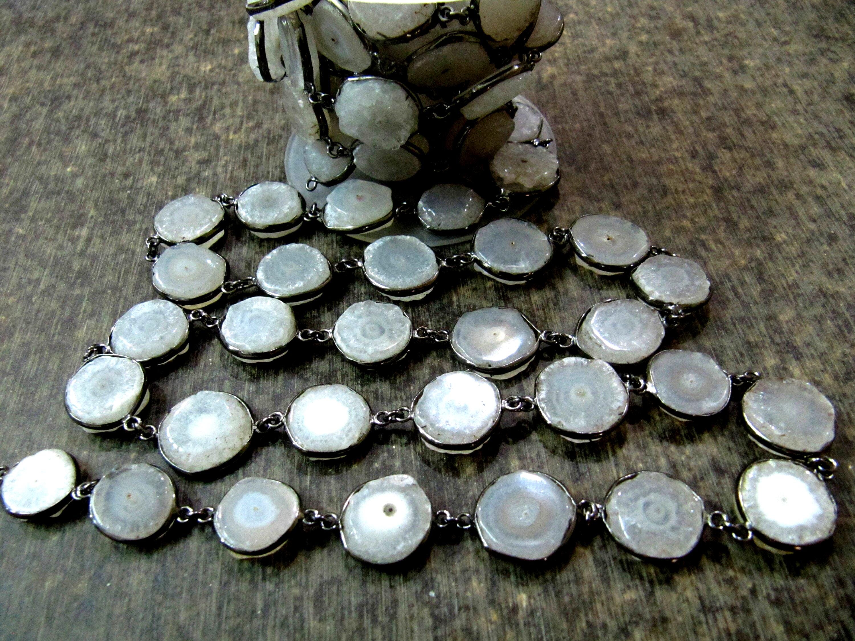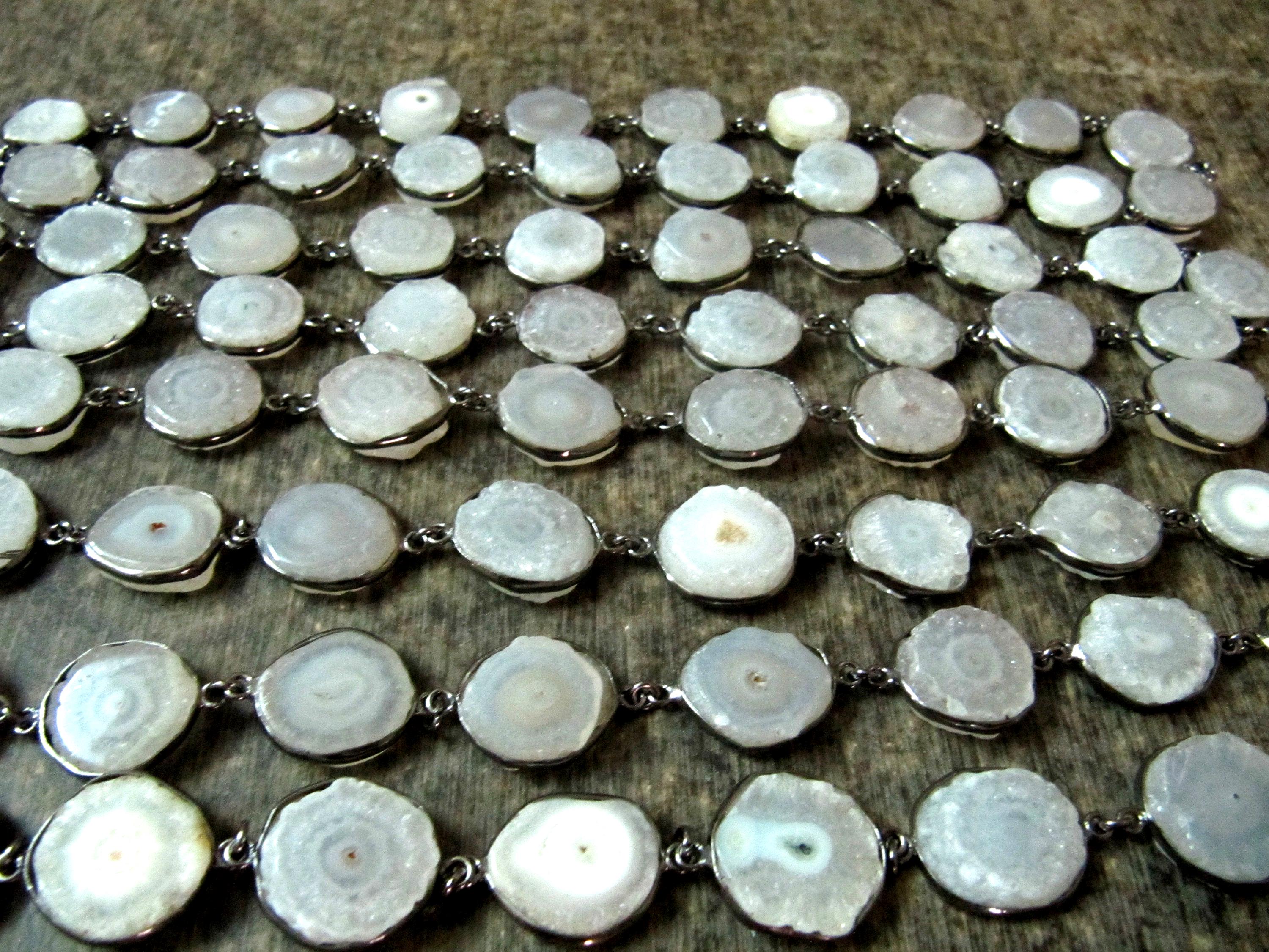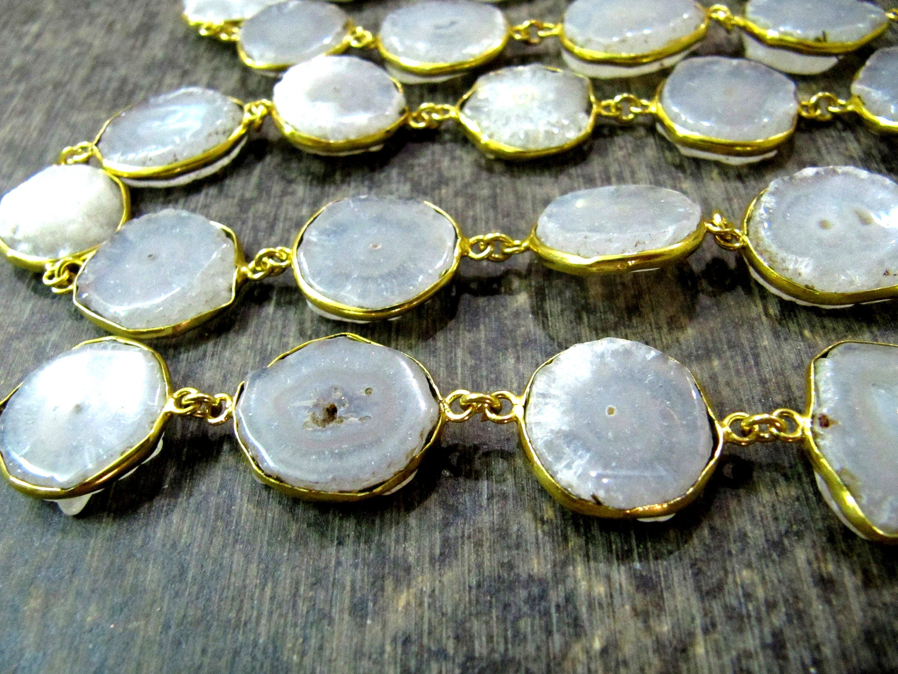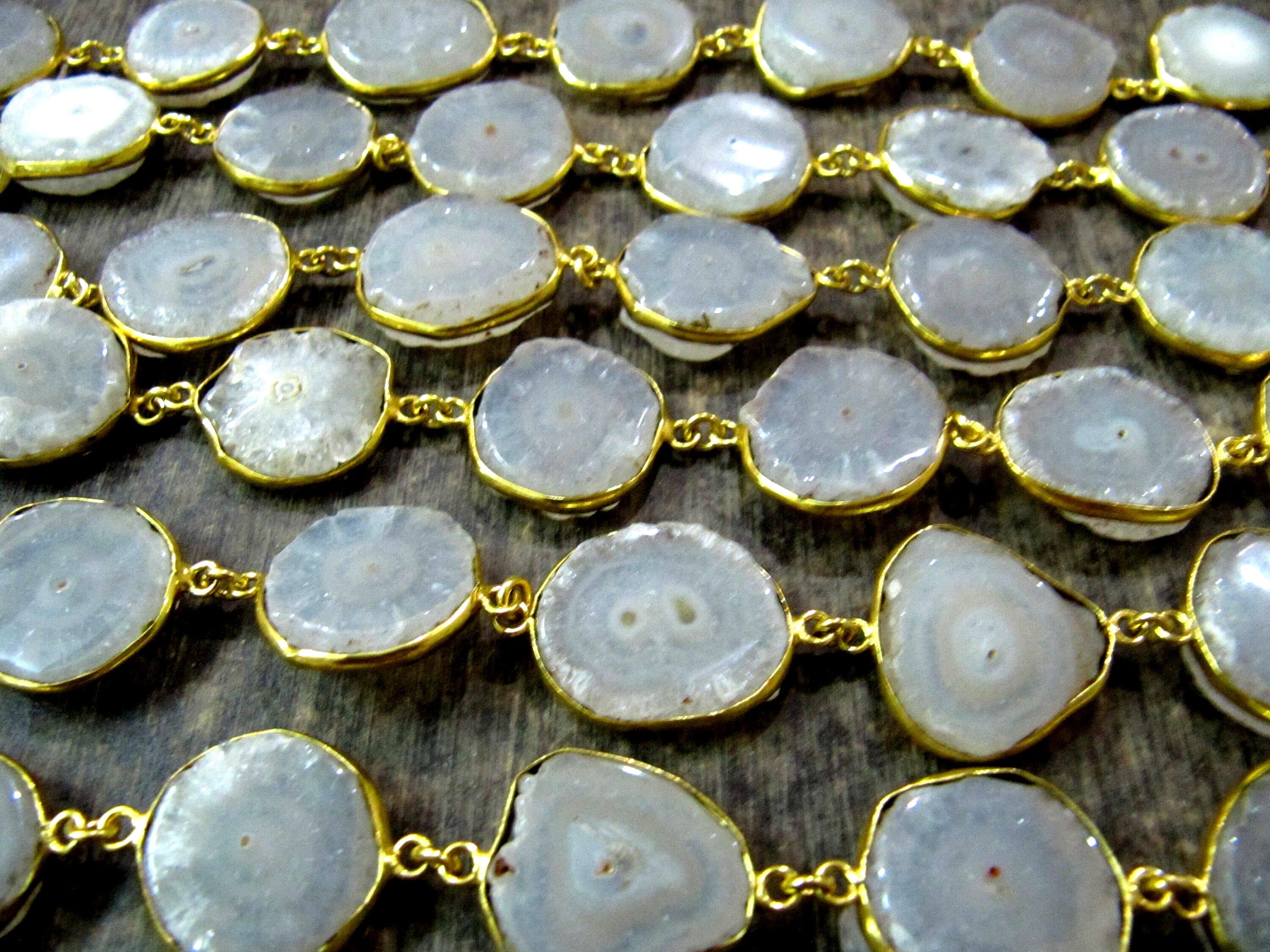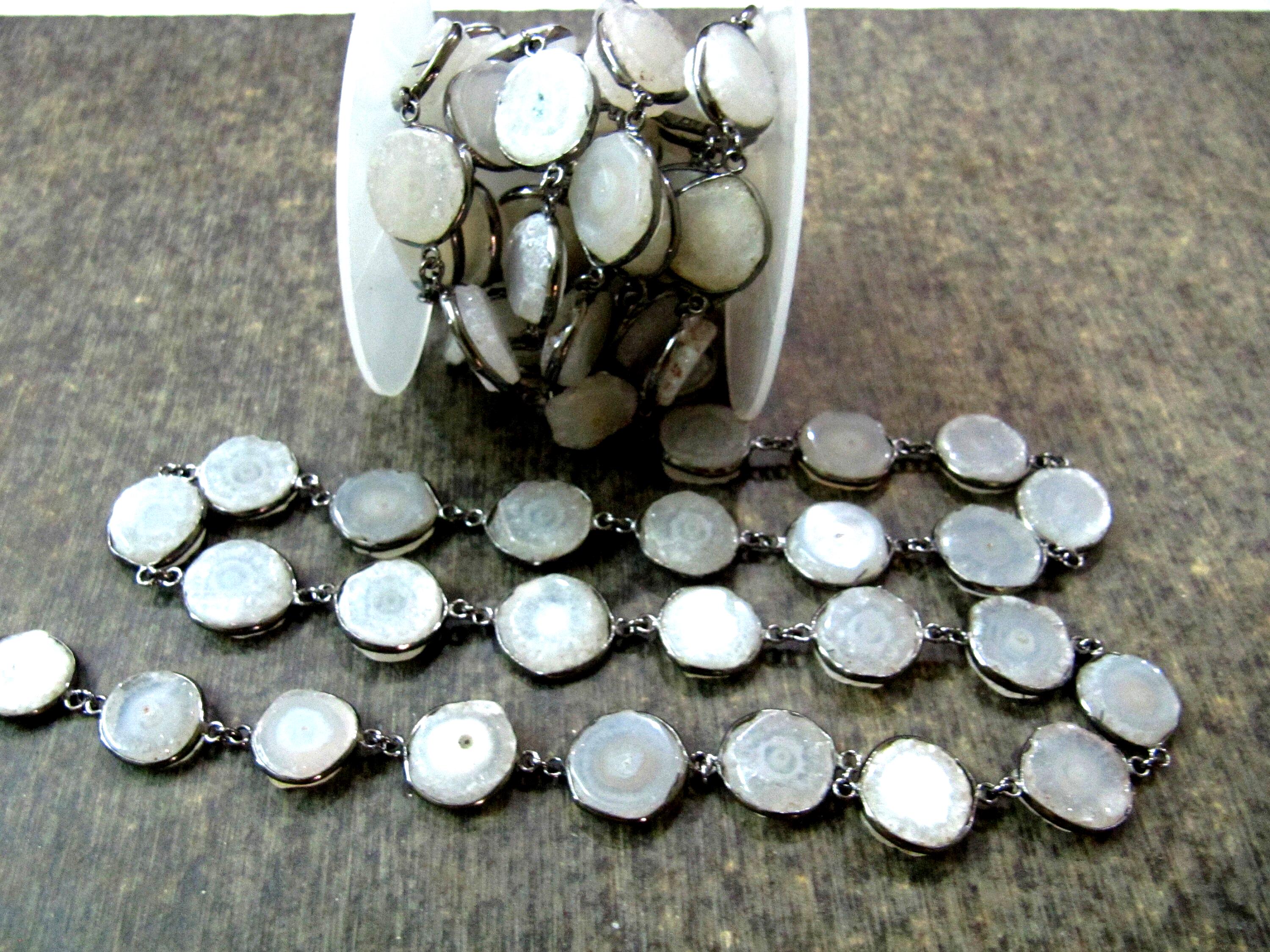 Natural White Solar Quartz Round 15-19mm Stalactite Slice Connector Bezel Chain Sold Per Foot