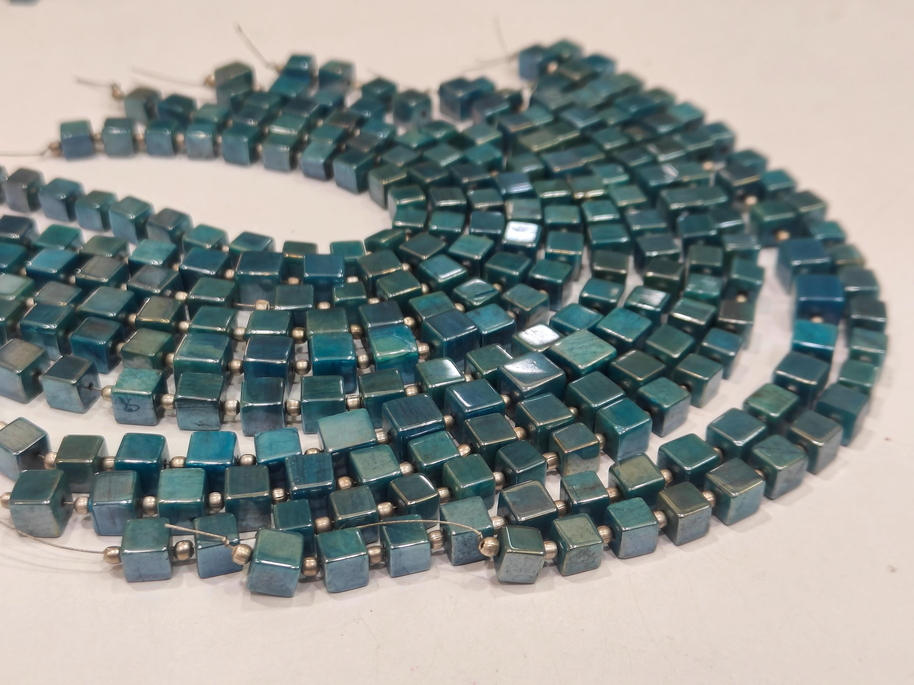 Natural Moonstone AB Mystic Coated 6-7mm Blue Topaz Color Plain Smooth Cube Box Shape Jewelry Making Beads Strand 8 inches long Wholesale Prices