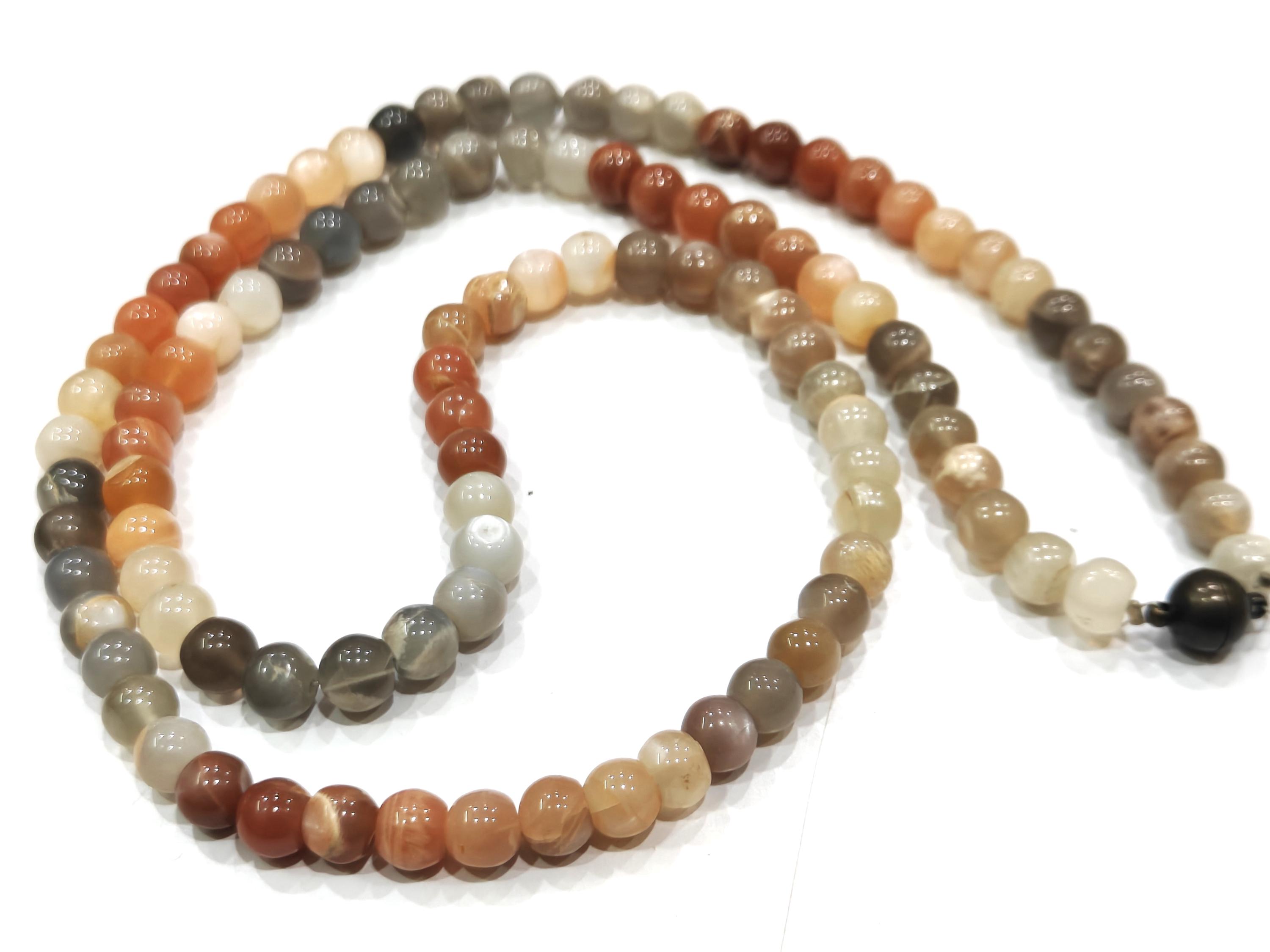 Natural Multi Moonstone Round Plain Smooth 7mm Beaded Necklace 26 Inches Long With Magnetic Clasp Top Quality Wholesale prices