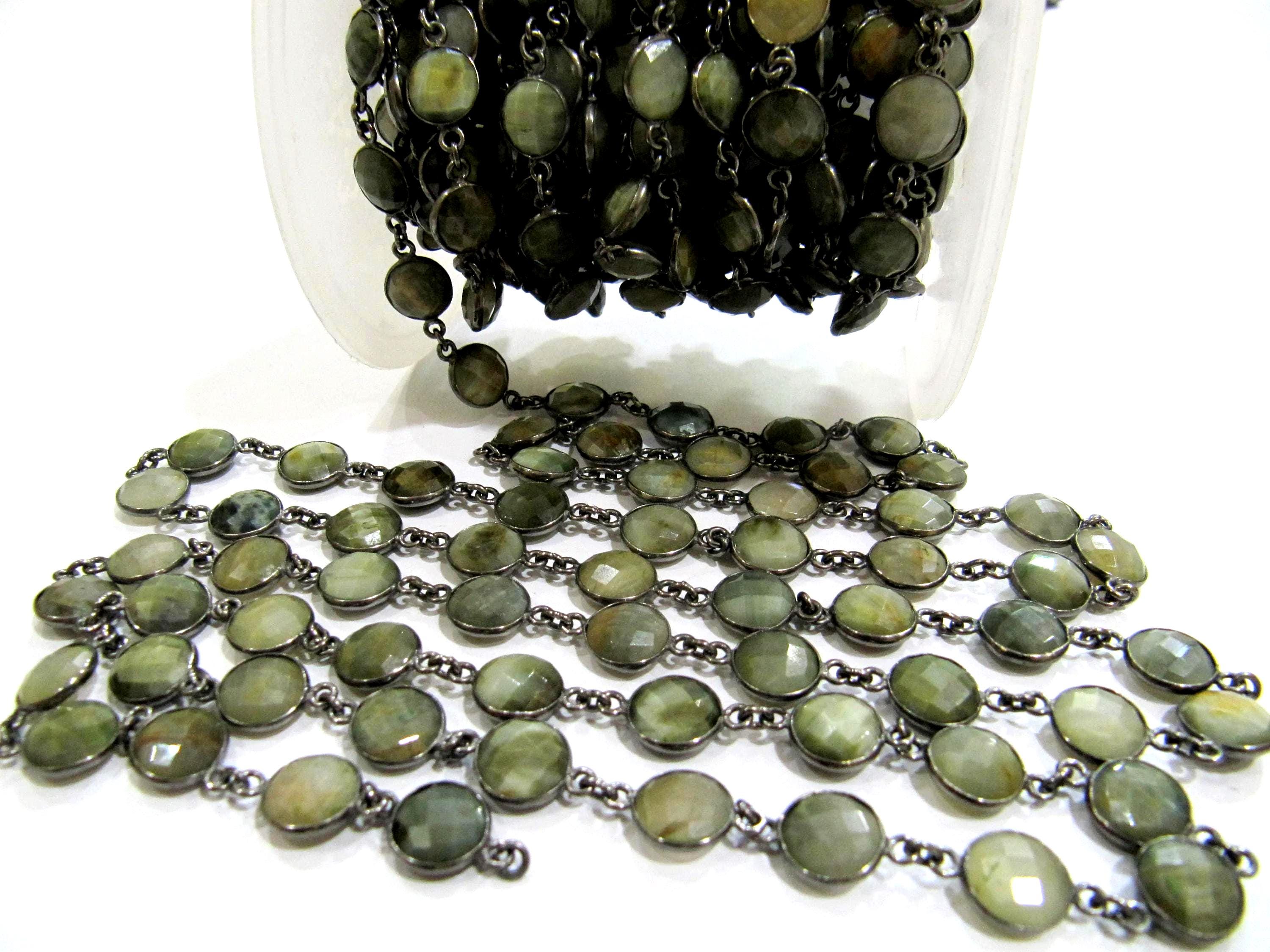 Natural Cat's Eye Round Coin Shape Briolette Faceted 10mm Bezel Connector Chain Best quality Wholesale Prices Sold Per Foot